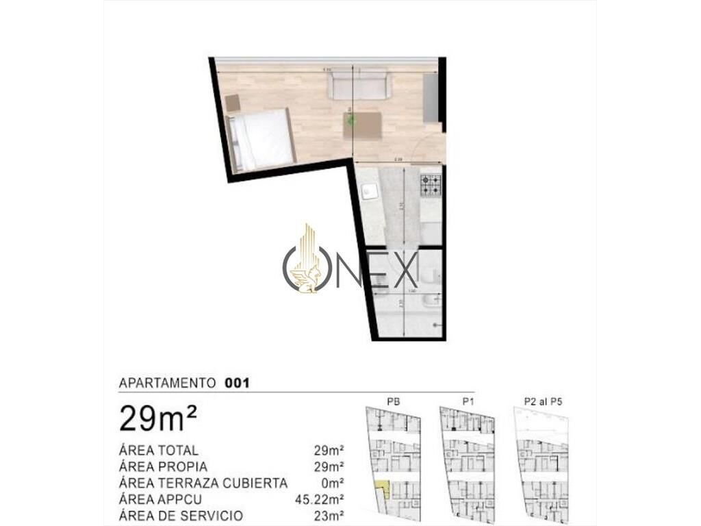 Acogedor monoambiente de 29 m , ubicado en primer piso con vista a contrafrente. Ideal para una o dos personas, en un edificio de categoría con acabados de calidad. Actualmente en construcción, con entrega estimada para Noviembre de 2026.