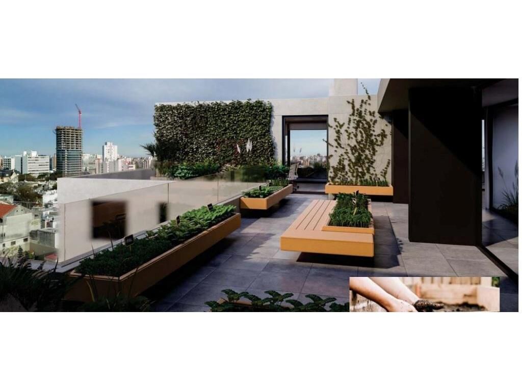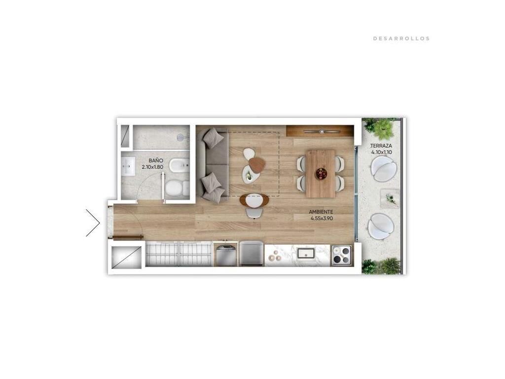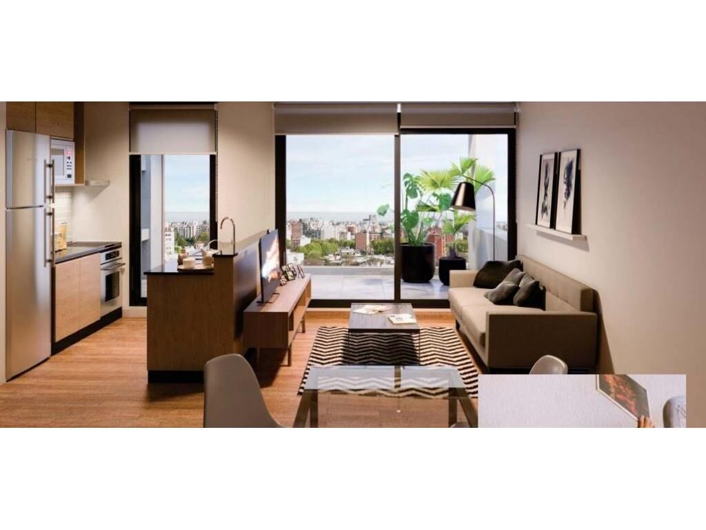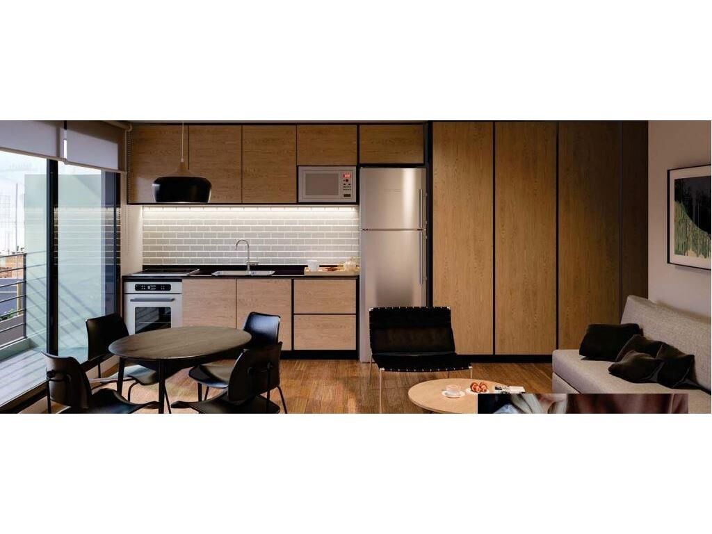 Monoambiente de 34m2. Con cocina integrada y una preciosa terraza. Cuenta con lavarropas y espacio para colgar ropa.
