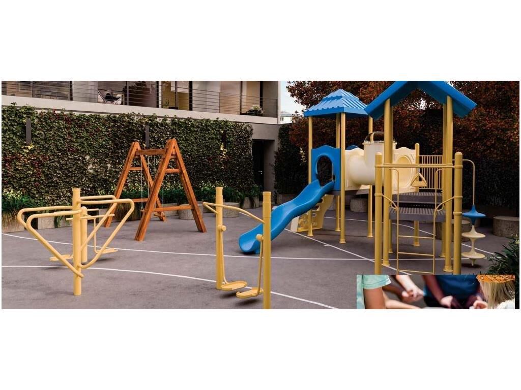 JUGÁ: Plataforma equipada con juegos para niños y espacio verde para tu disfrute.