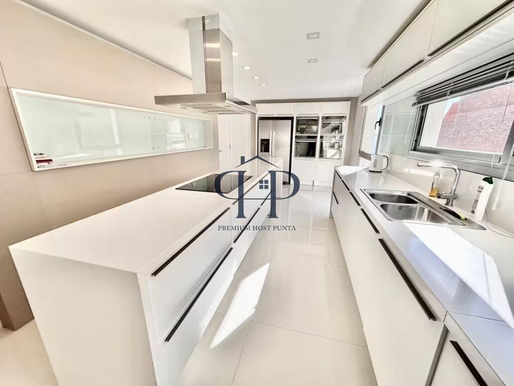 Gran cocina americana equipada completa. Anafe inducción, doble bacha en acero inoxidable, lavavajillas, doble horno eléctrico, horno microondas, cava de vinos, heladera de doble puerta con freezer. También cuenta con lavadero independiente con lava secarropas. La unidad cuenta con 3 termotanques de máxima capacidad.