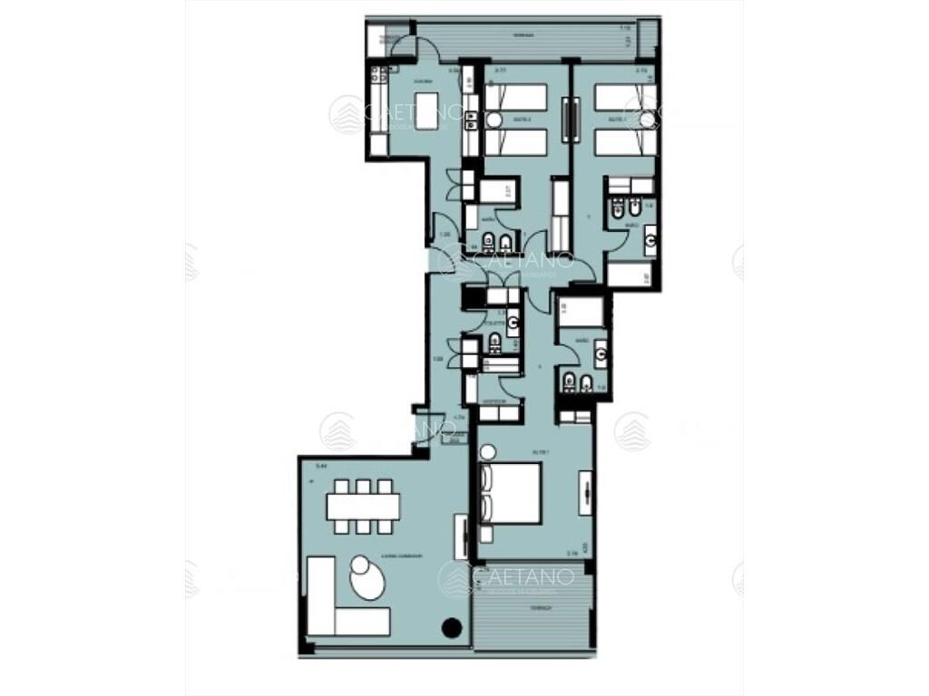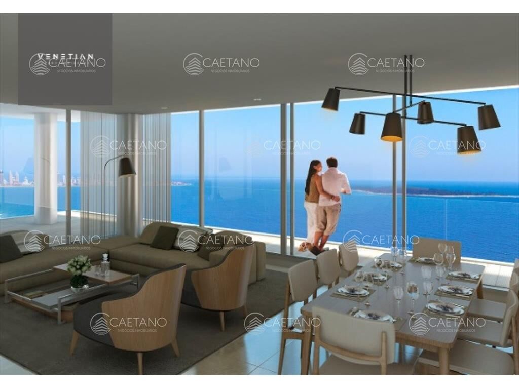 Los apartamentos tienen 2 dormitorios en suite más toilette, 3 dormitorios en suite más toilette, 3 dormitorios en suite más toilette y dependencia de servicio. Todos los aptos tienen el living comedor y la suite principal con vista directa al mar. Los aptos de 2 dormitorios están disponibles a partir del piso 8o cuyo precio es u$s 657.206 con 1 cochera incluida en el precio, y de 3 dormitorios a partir del 2o piso desde u$s 743.431 con una cochera incluida en el precio.