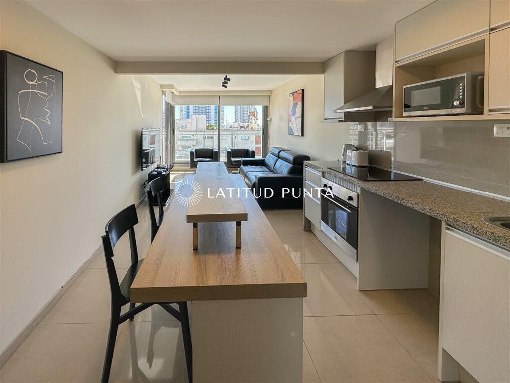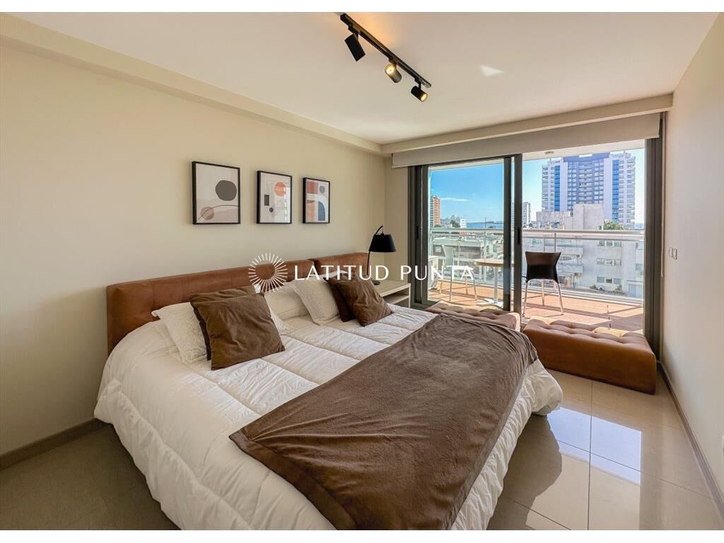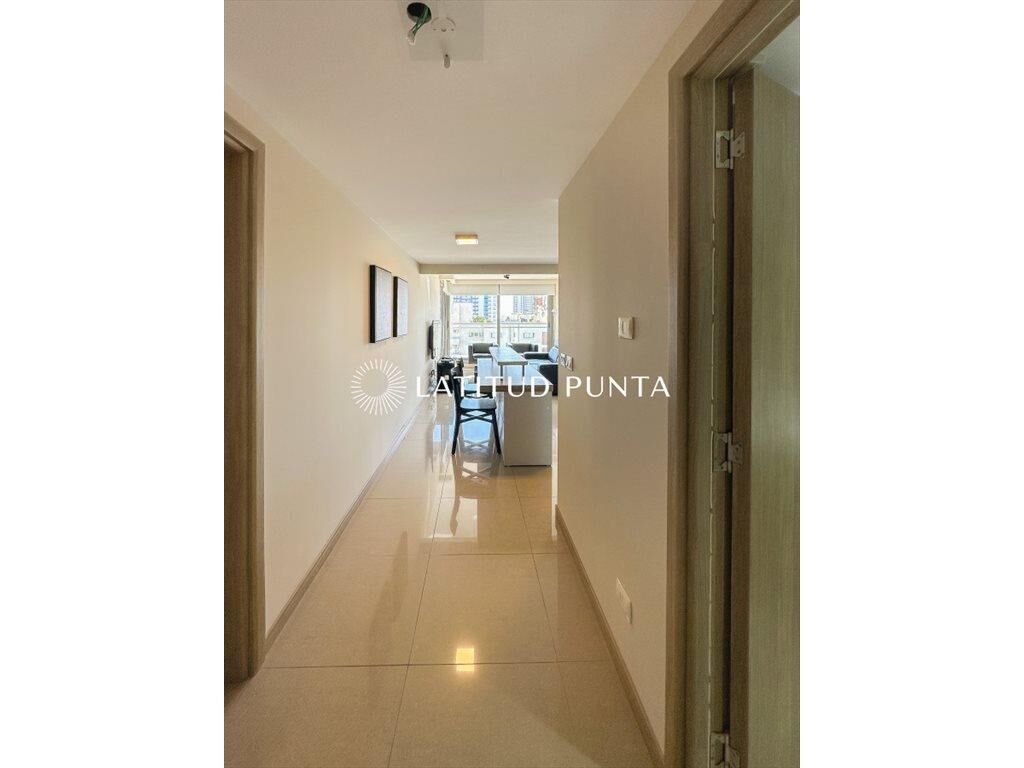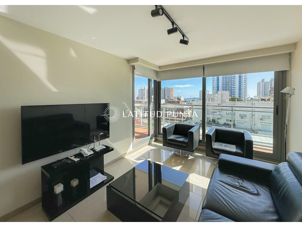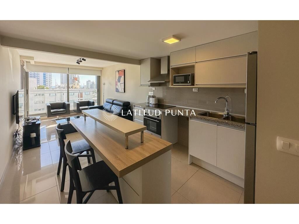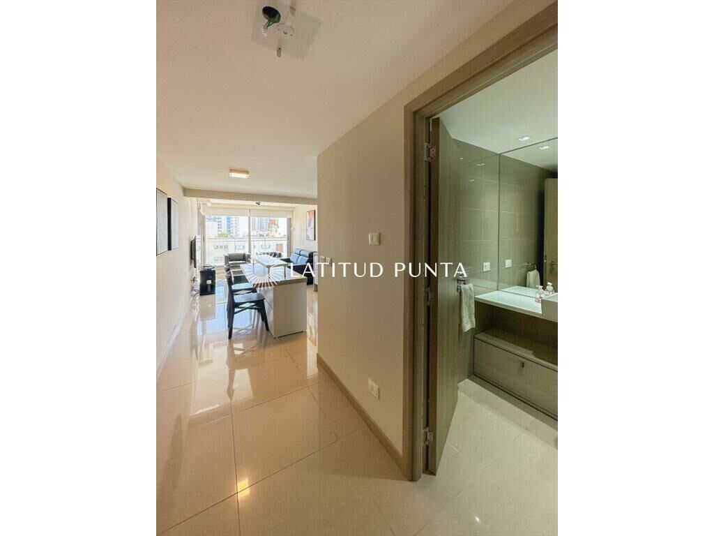 Cómodo apartamento muy funcional en excelente ubicación y con muy buenos servicios lo que lo hace ideal para vivir todo el año o para renta tanto en verano como en invierno. Cuenta con living-comedor con cocina integrada y salida a balcón muy soleado y con vista parcial al mar e isla de Gorriti. Toilette, dormitorio en suite con un plus o medio dormitorio. Garage en subsuelo. El edificio se destaca por su piscina infinita en el nivel 16.