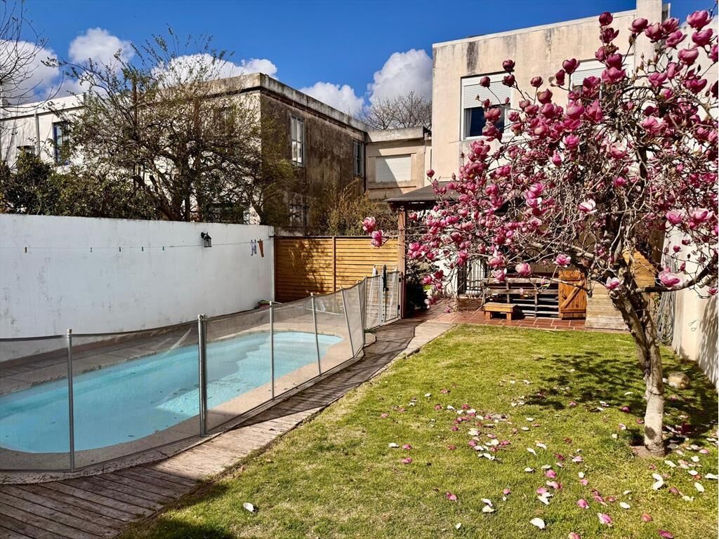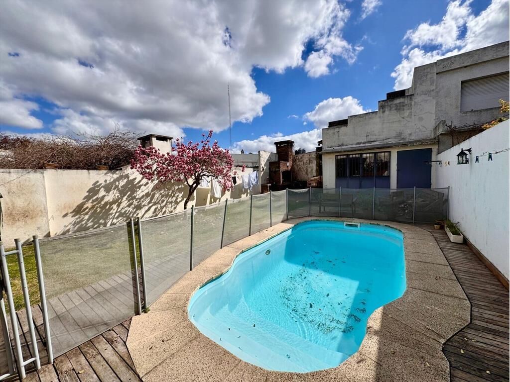 Fondo enjardinado, tamaño ideal, facil mantenimiento. Piscina muy disfrutable, parrillero abierto y depósito con posibilidad de transformar en barbacoa.