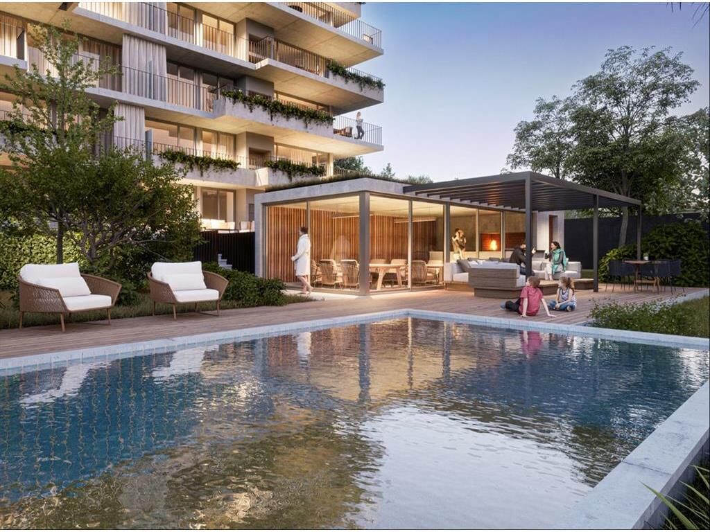 Barbacoa con living, piscina exterior climatizada, solárium, laundry, bicicletero,losa radiante, seguridad, accesibilidad, estación eléctrica.