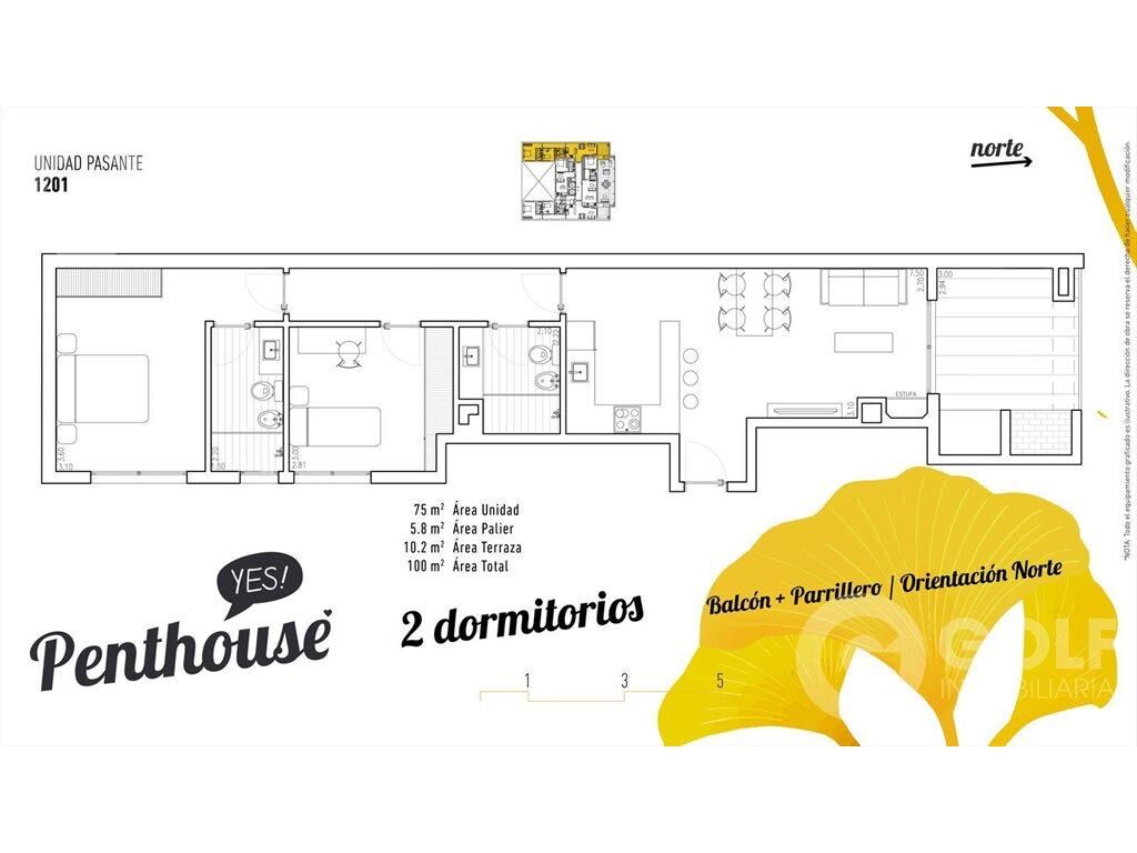 PENTHOUSE DE 2 DORMITORIOS CON PARRILLERO