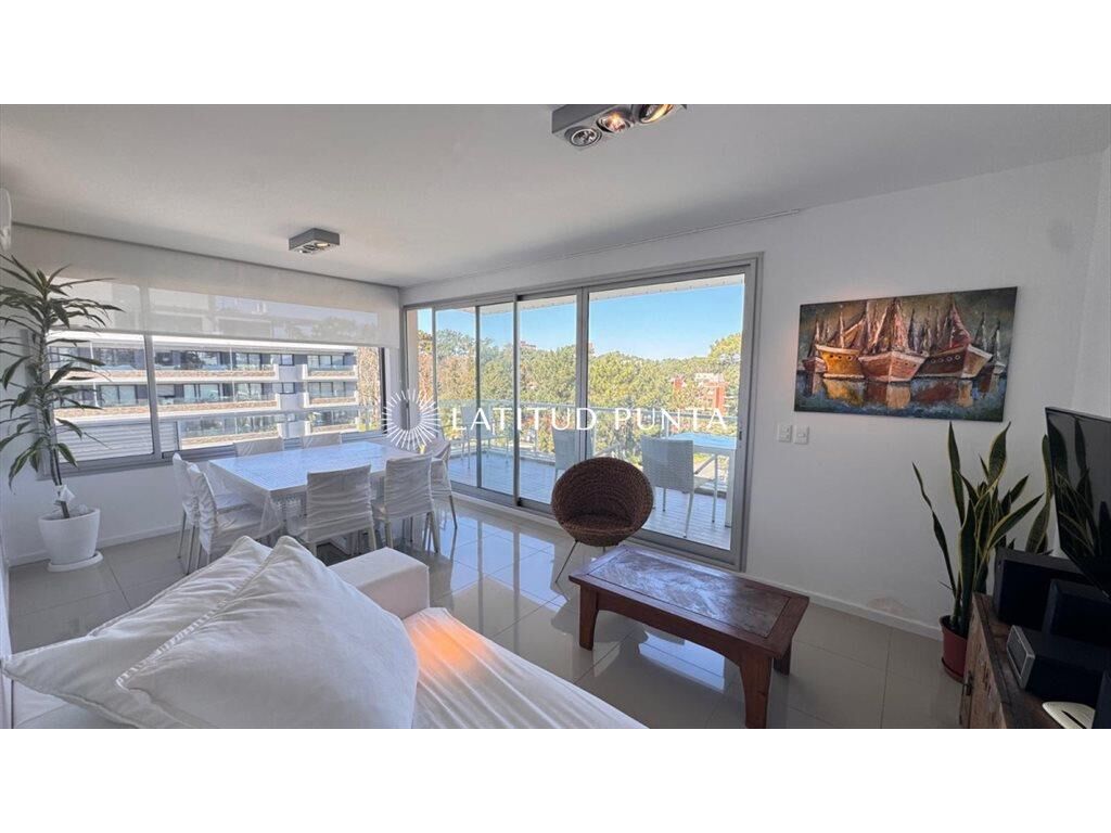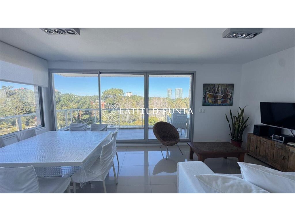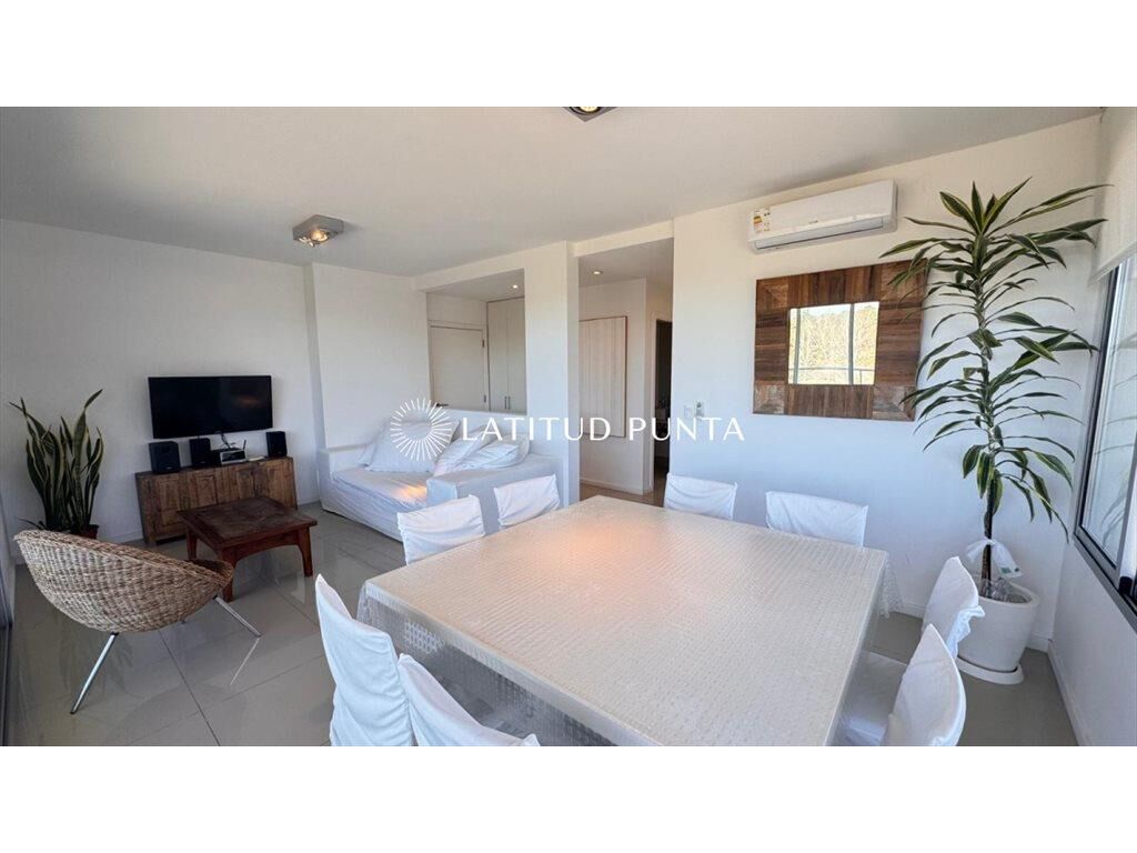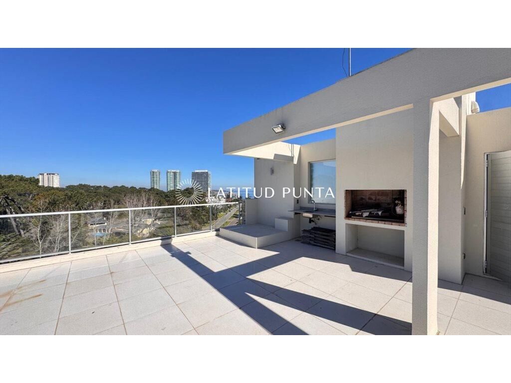 Penthouse de 3 dormitorios (2 dormitorios con balcón), 2 baños (1 en suite), living-comedor con balcón amplio, cocina muy luminosa. En planta baja cuenta con 1 dormitorio y baño, de uso exclusivo del apartamento se usa como como dependencia o de visitas. Cochera techada para dos autos y baulera amplia. En el último piso cuenta con una terraza amplia con parrillero con mesada (se accede por ascensor o escalera del apartamento 1 piso). El edificio cuenta con servicio de portería, mucama, circuito cerrado de video vigilancia, sala de reunión, gimnasio, piscina y parrillero común en el último piso.