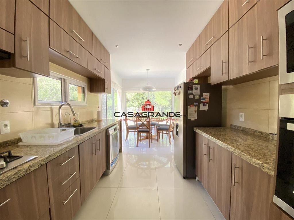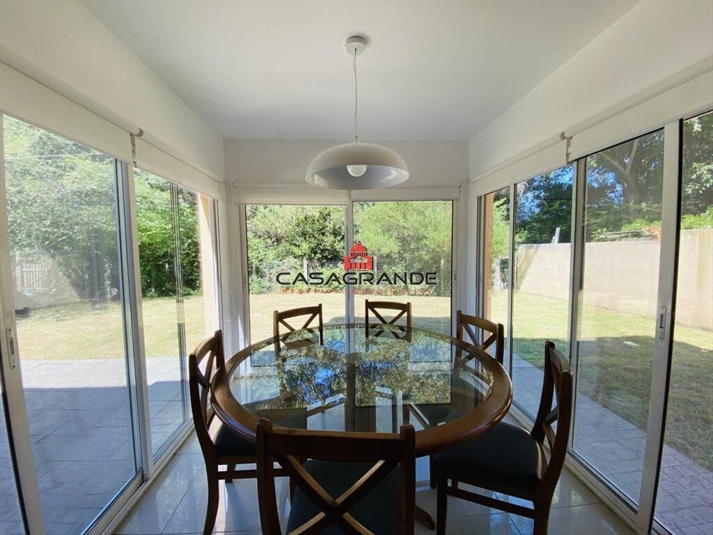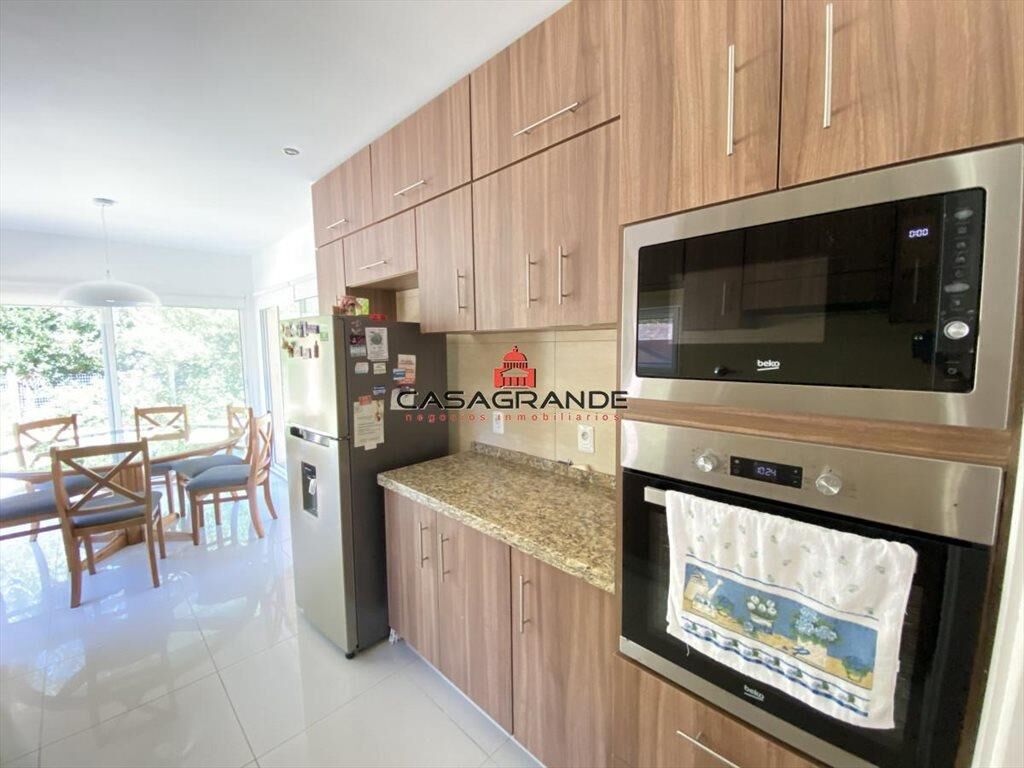 Cocina definida con comedor diario y ventanales con vista al jardín.