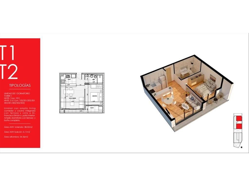 1, 2 dormitorios y garajes. U$S 123.151* Y 2 dormitorios U$S 153.550