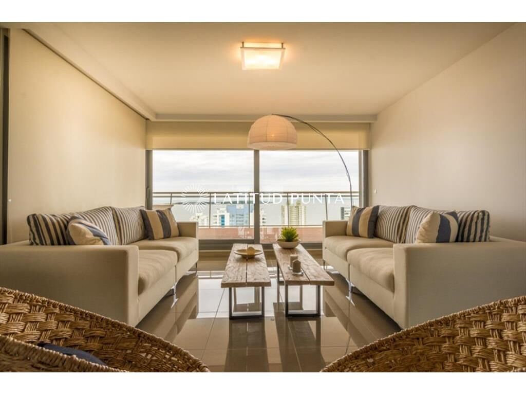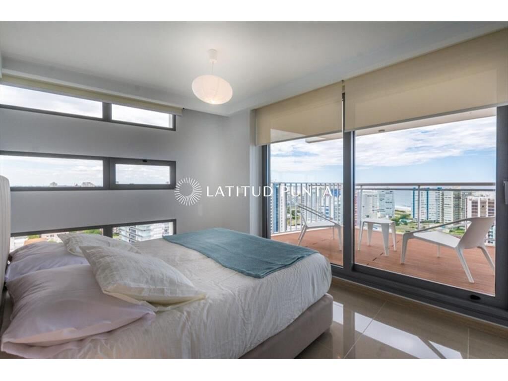 Apartamento pasante con excelente orientación solar e impactantes vistas a Mansa y Brava. Cuenta con 3 dormitorios (una suite), 2 baños completos más toilette. Extenso living-comedor y cocina definida. Terraza hacia la Mansa con jacuzzi y segunda terraza hacia la Brava con parrillero. Edificio con amenities completos, se destaca una piscina infinita en el nivel 16 con vista a Isla Gorriti. Se vende sin equipamiento.