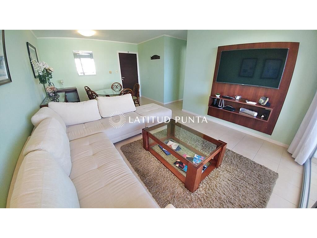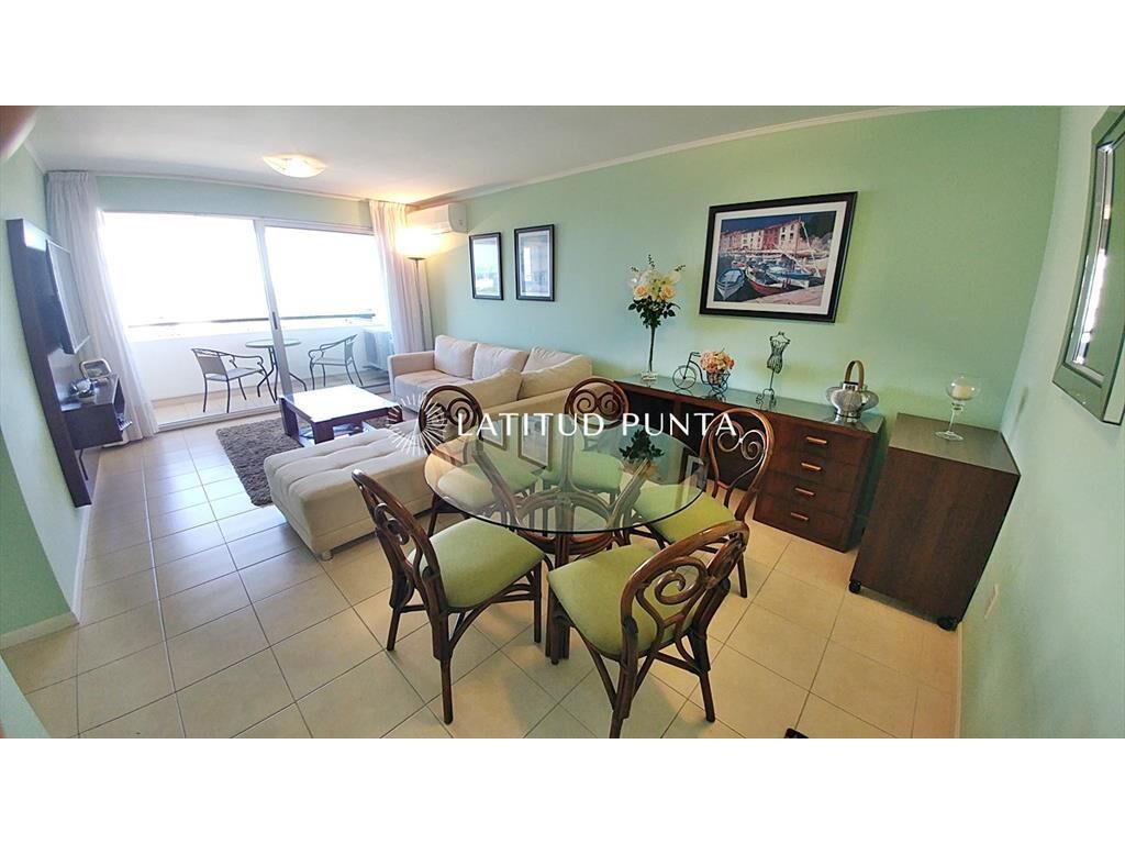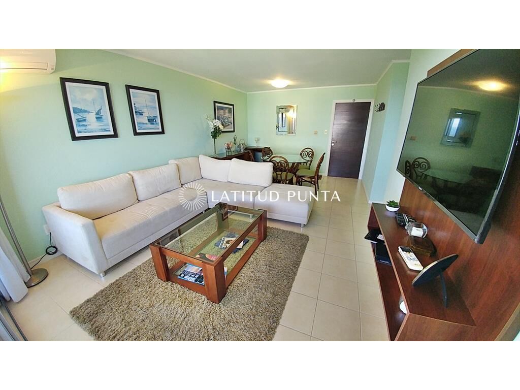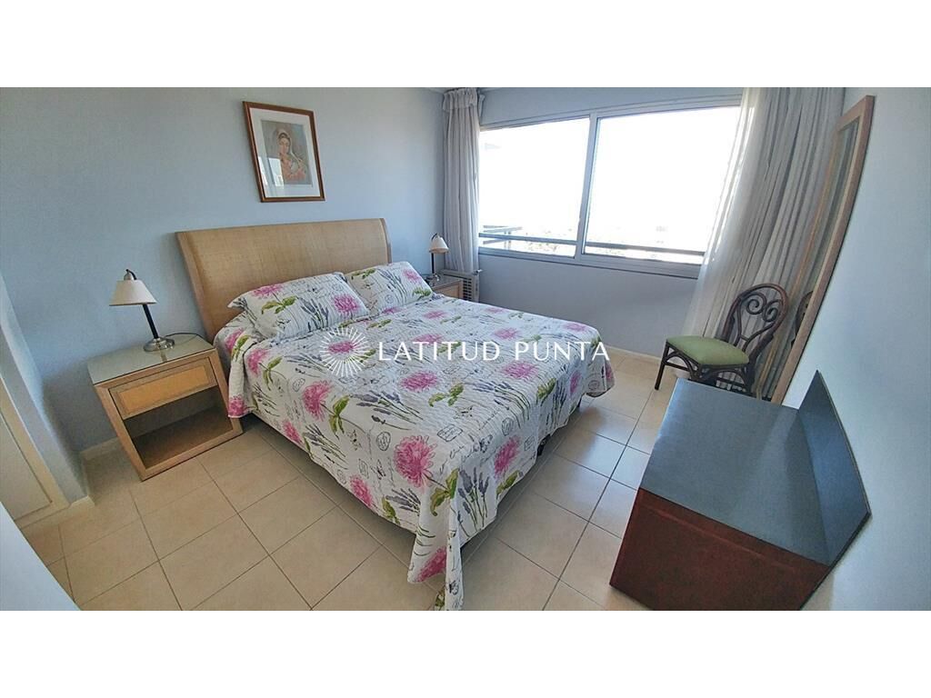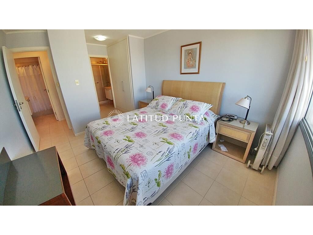 Cómodo apartamento de dos dormitorios con dos baños. Vista al mar desde todos los ambientes. Cocina con lavadero. Edificio con piscina exterior, piscina interior climatizada, cancha de tenis, recepción 24hs, entre otros servicios.