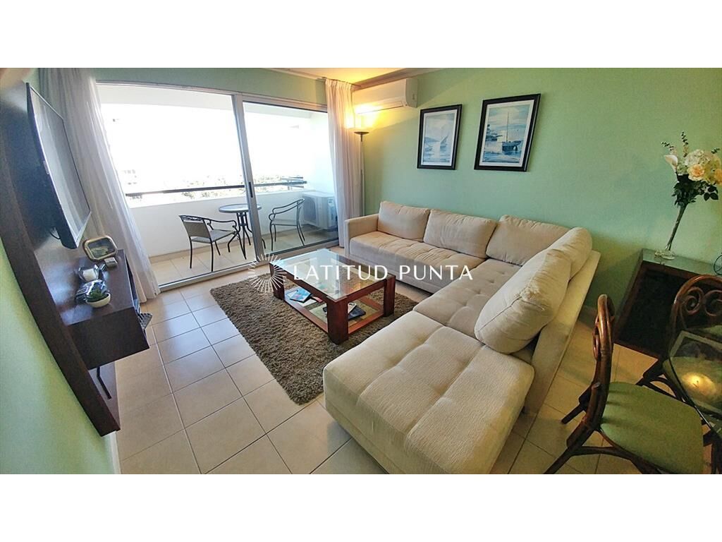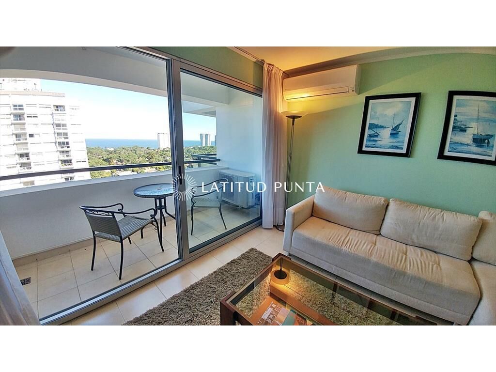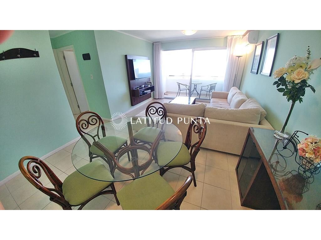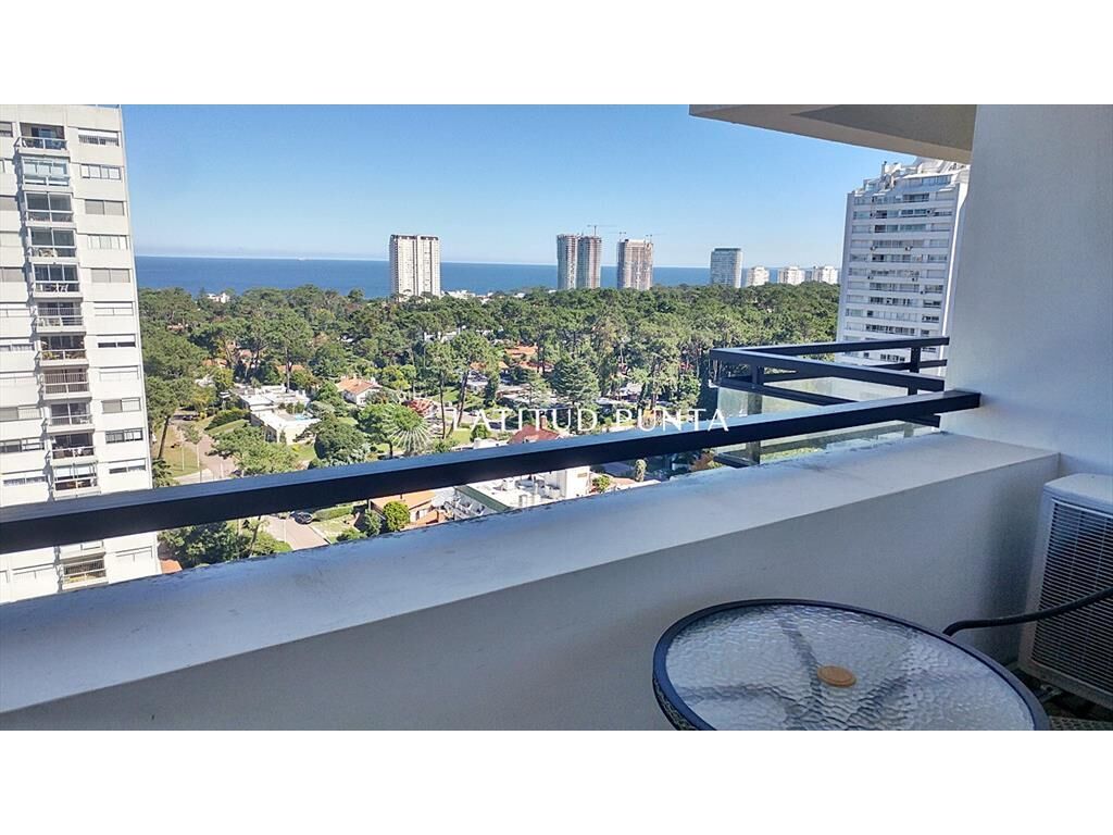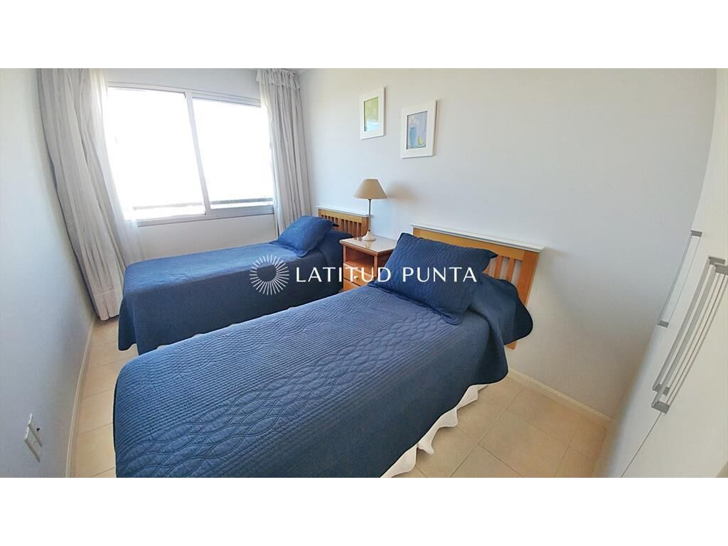 Cómodo apartamento de dos dormitorios con dos baños. Vista al mar desde todos los ambientes. Cocina con lavadero. Edificio con piscina exterior, piscina interior climatizada, cancha de tenis, recepción 24hs, entre otros servicios.