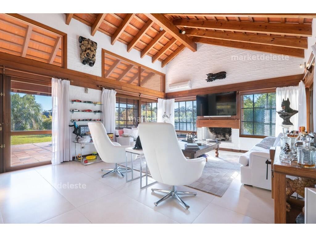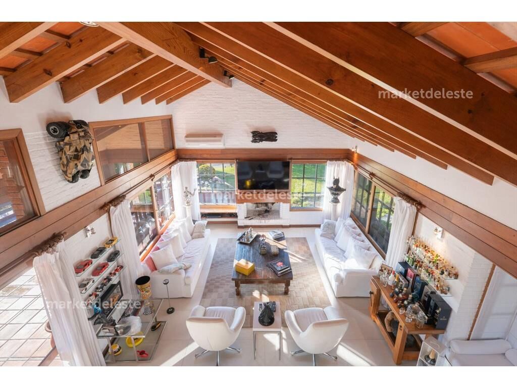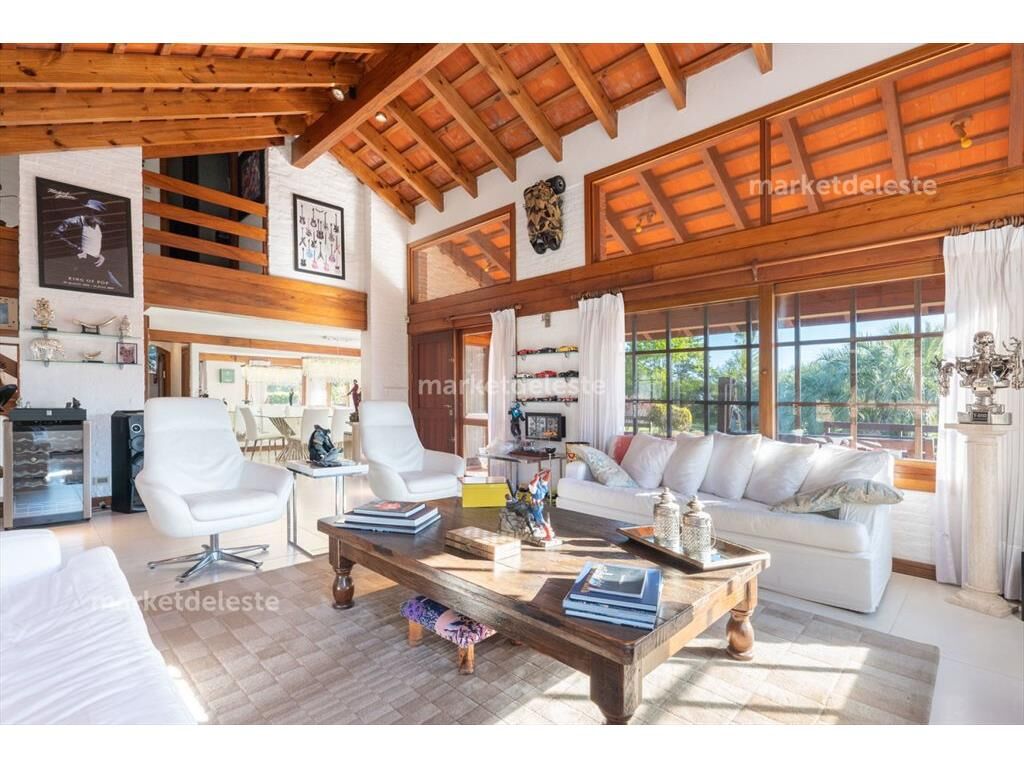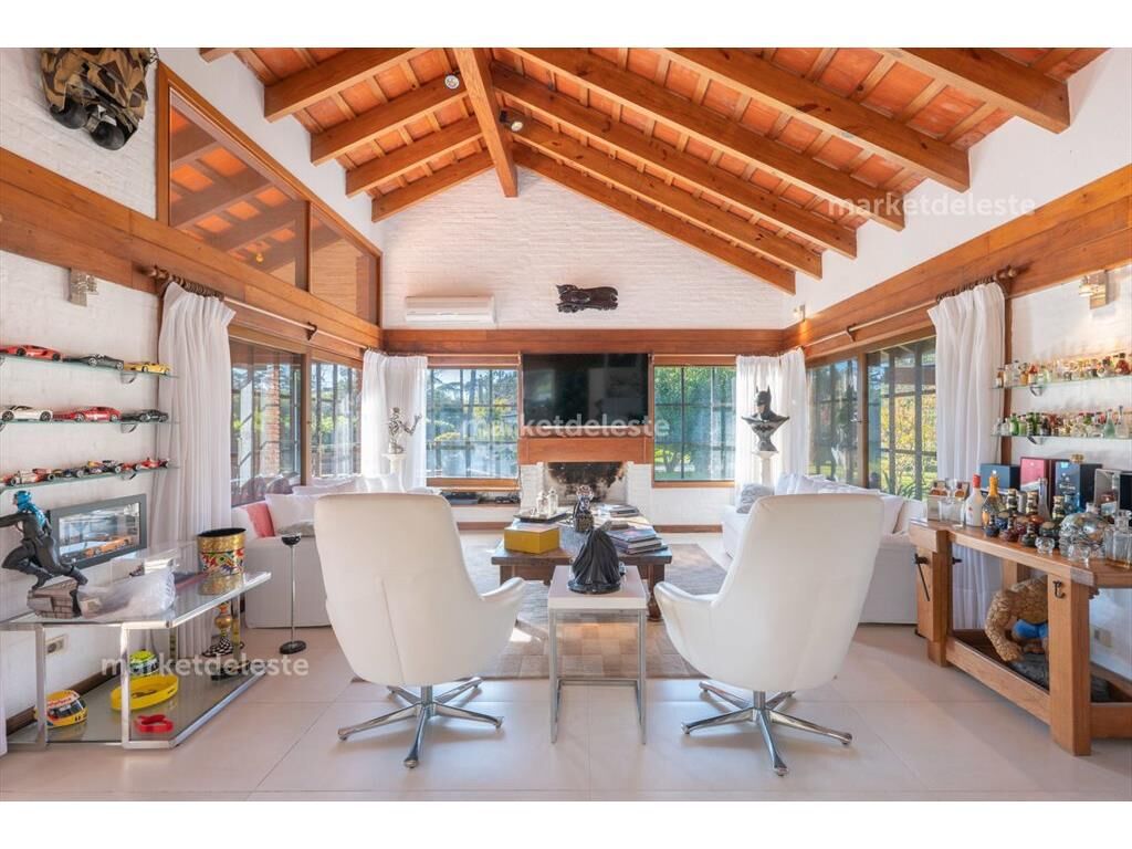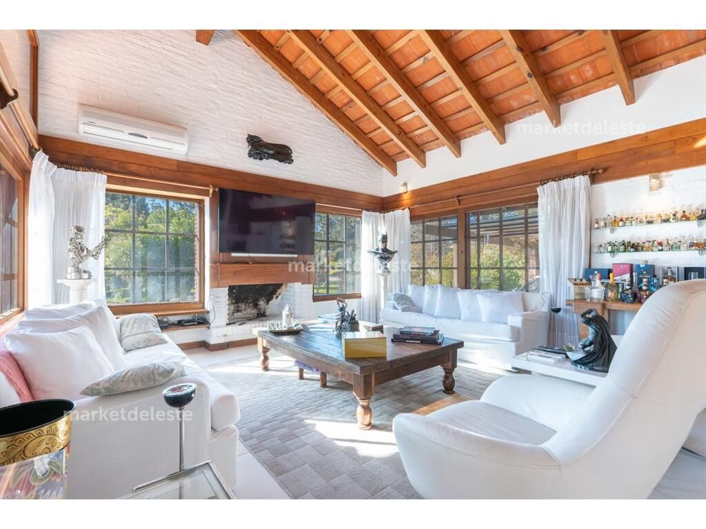 Espectacular y moderna residencia en en la playa mansa a metros del mar. En 2 niveles cuenta con un amplio living comedor y 3 dormitorios con baños propios, más un playroom en el nivel inferior y una master suite con su baño de grandes dimensiones con jacuzzi y sauna incluido. En el exterior encontramos una segunda construcción con 2 dormitorios de huéspedes y casa de caseros.