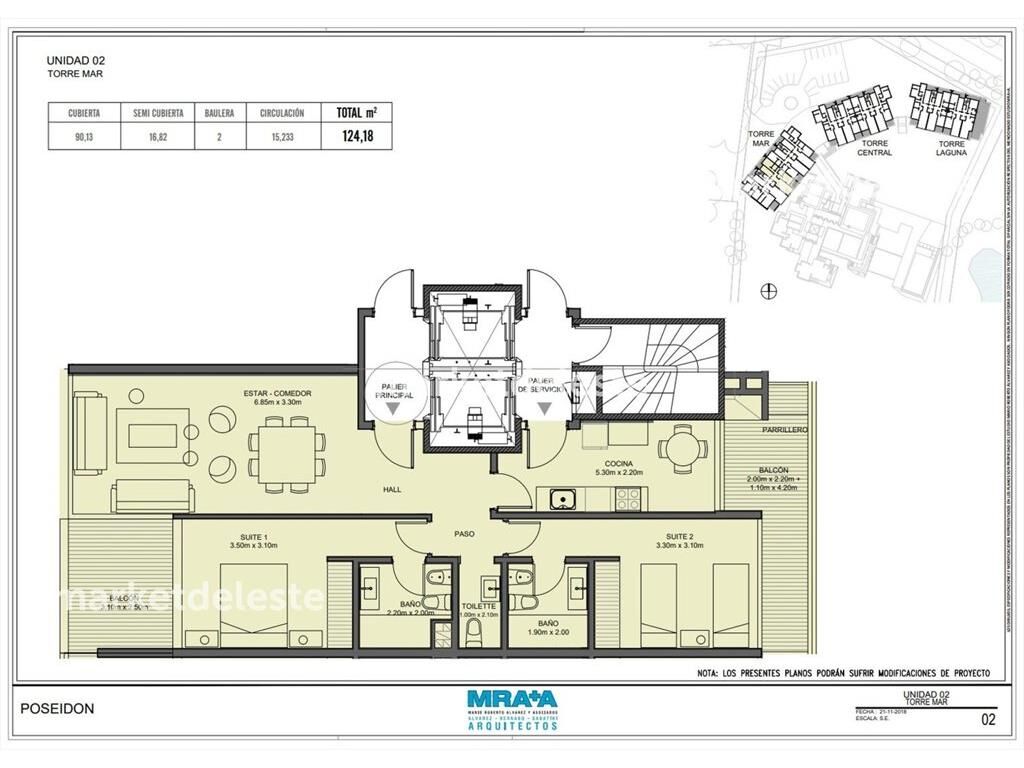 Departamento central pasante en edificio POSEIDON LAGUNA.Unidad de 124 mt2 totales y 90 mt2 internos con living comedor con increíbles vistas.2 dormitorios en suite más toilette. Terraza al mar y terraza con parrilla al bosque. FINANCIACION POR ITAU O DE LA LA EMPRESA A 6 AÑOS GASTOS OCUPACION 7.5 %