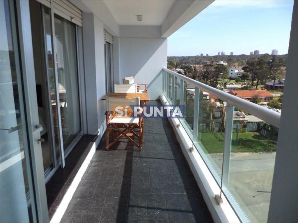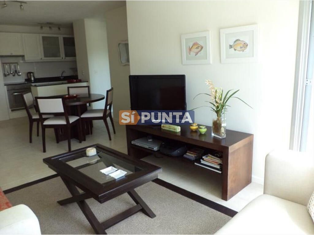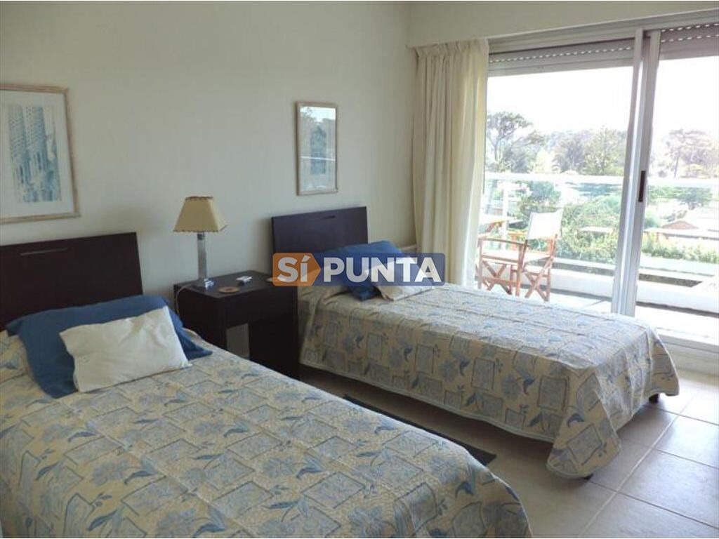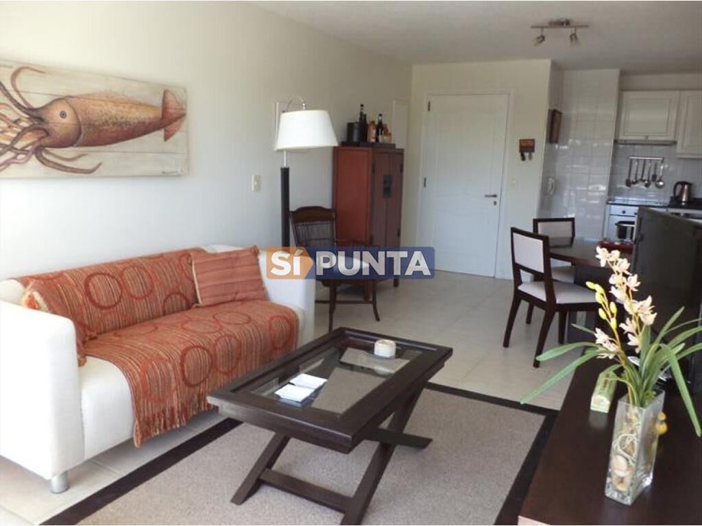 Precioso apartamento en edificio muy próximo al mar. Living - comedor con cocina integrada, terraza, 2 dormitorios (una suite), 2 baños. Servicio de playa y mucamas!