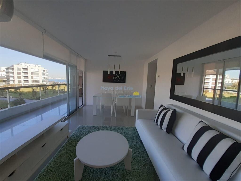 Apto lateral con living comedor, amplio balcón terraza con parrillero propio, dos dormitorios, dos baños, uno en suite, cocina con desayunador, recepción 24 hs, piscina cerrada y abierta, gym, cine, servicio de mucama, servicio de playa, play room.