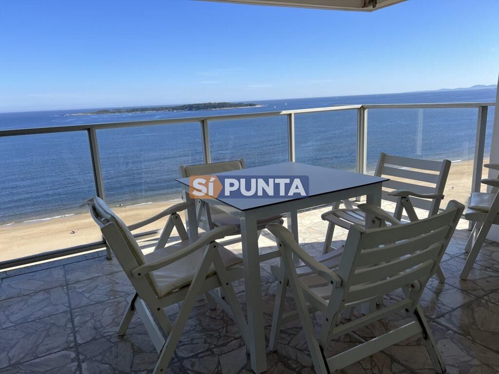 Espectacular apartamento frente al mar, en primera línea de parada 8 de playa mansa, unidad de 3 dormitorios, 3 baños, habitación de servicio y baño de servicio, toilette, recepción, amplio living comedor, con impresionante vista al mar. Balcón terraza amplia con la mejor vista de la playa mansa de Punta del Este. Cocina grande con barra, parrillero propio, lavadero, etc. En alquiler de verano.