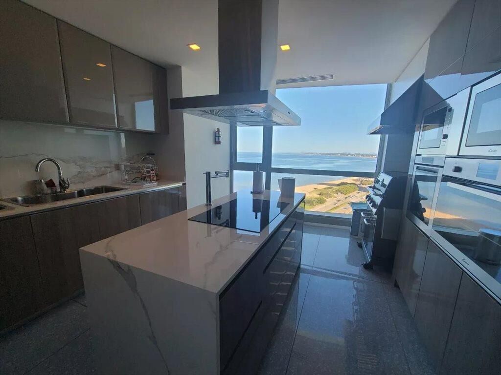 ALQUILER INVERNAL U$S 5800 Departamento alto en edificio FENDI CHATEAU esquinero tipología 01, con orientación a Punta Ballena. Sentí la sensación de estar navegando disfrutando la puesta del sol. Posee cuatro dormitorios en suite. Cuenta con amplio living-comedor con vistas a los más maravillosos atardeceres y salida a gran terraza. Espectacular cocina con amplios espacios, isla con anafe completamente equipada, con 2 hornos, 2 microondas, 2 bachas, parrillero, heladera doble puerta, lavavajilla. Lavadero con lavasecarropas. Baño social, Suite principal de generosas dimensiones con vestidor y salida a la terraza, dos amplias suites con vista al bosque y una cuarta suite más pequeña, con vista al mar. Muebles, decoración y luces incluidos en el precio. Planta de 250 m2 con 195 m2 internos aproximados Garaje doble con depósito incluido. Unidad con gastos de ocupación pagos, cortinas y artefactos eléctricos ya instalados. Loza radiante en living y suite principal. CAP6028926
