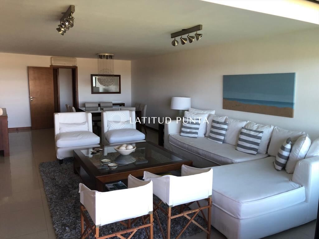 Excelente planta sobre pda 28 de playa brava.Muy lindo apto muy bien puesto.Amplio living comedor con baños social, amplio balcón con parrillero propio, 3 dormitorios en suite, cocina, terraza lavadero, dependencia de servicio con baño, garaje.