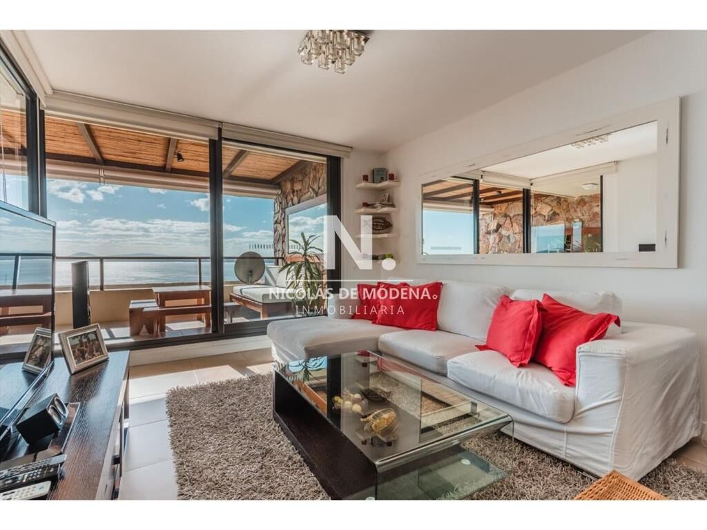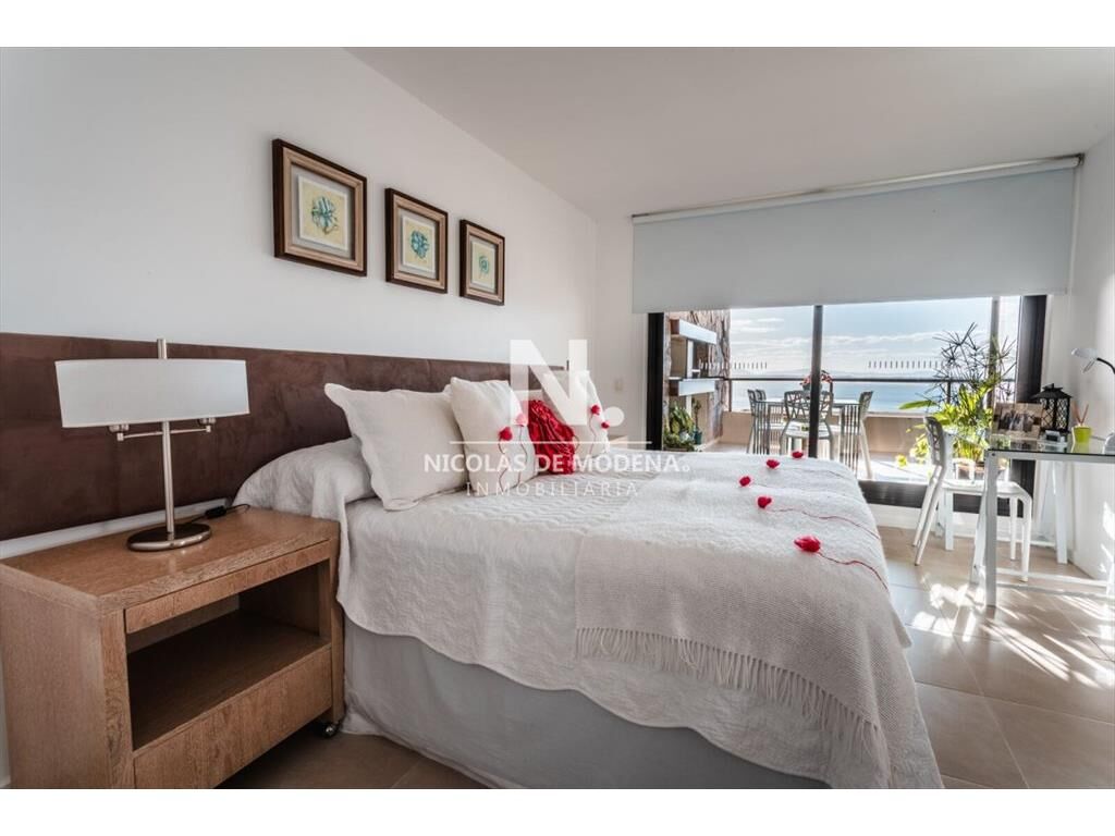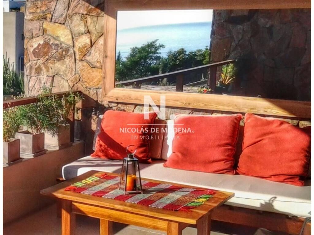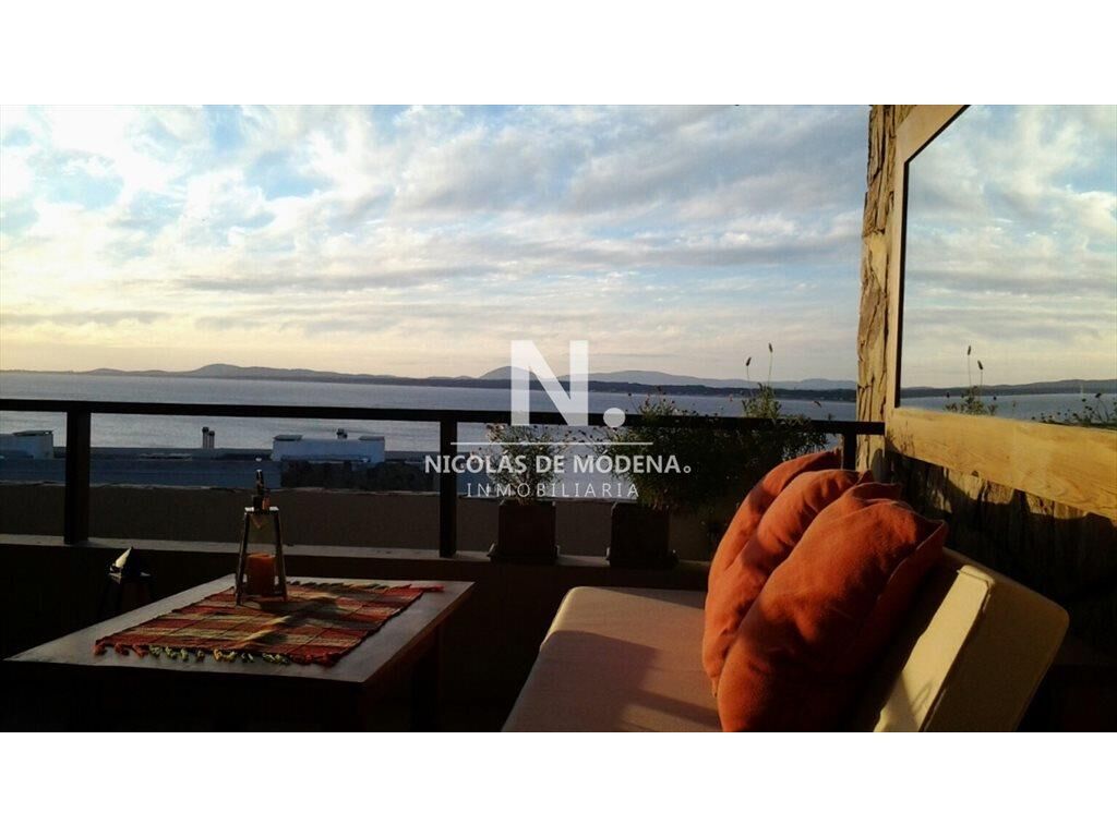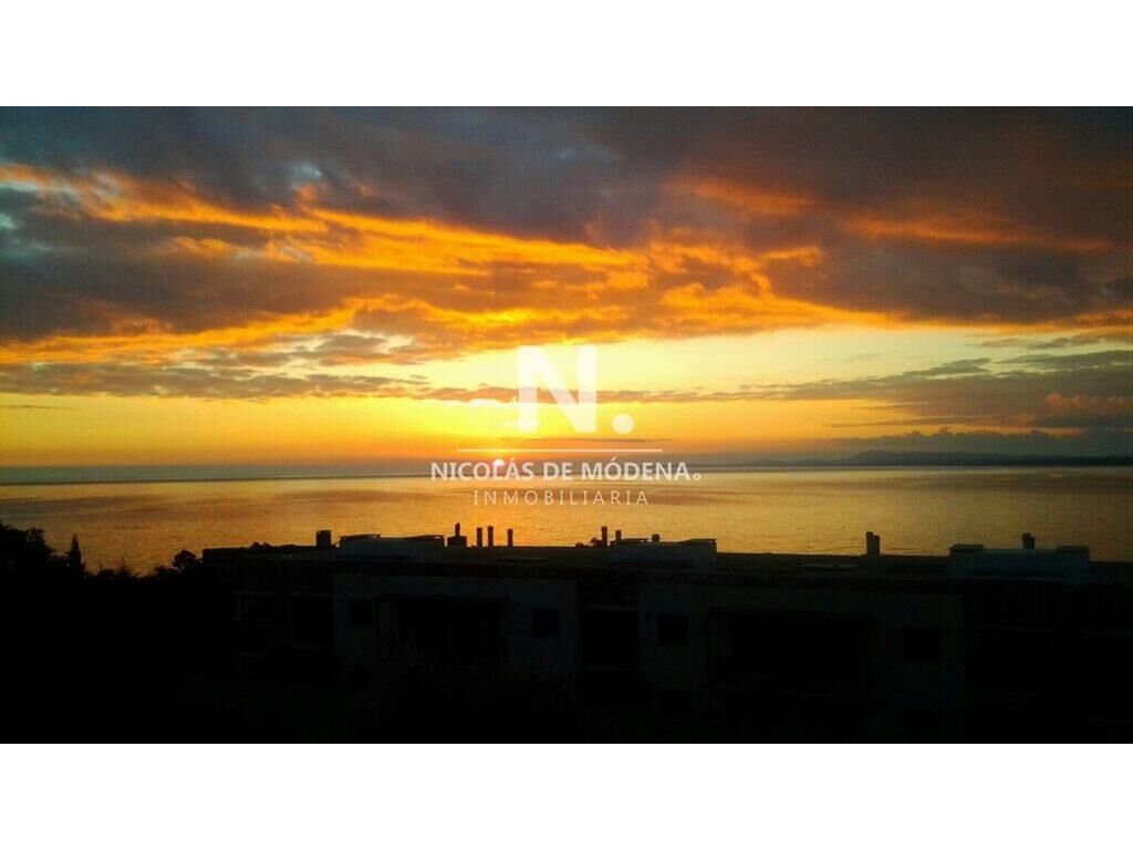 Living comedor amplio, terraza al frente con parrillero de uso exclusivo y las mejores vistas hacia el atardecer y la bahía de Solanas.
