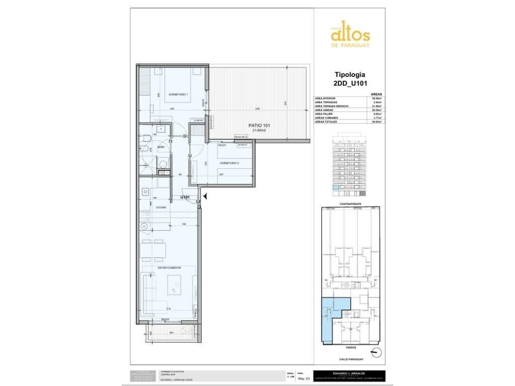 Se vende apto. 2 dorm. al frente, tiene terraza y patio. El edificio aun esta en construcción y se estima este pronto para marzo 2026.