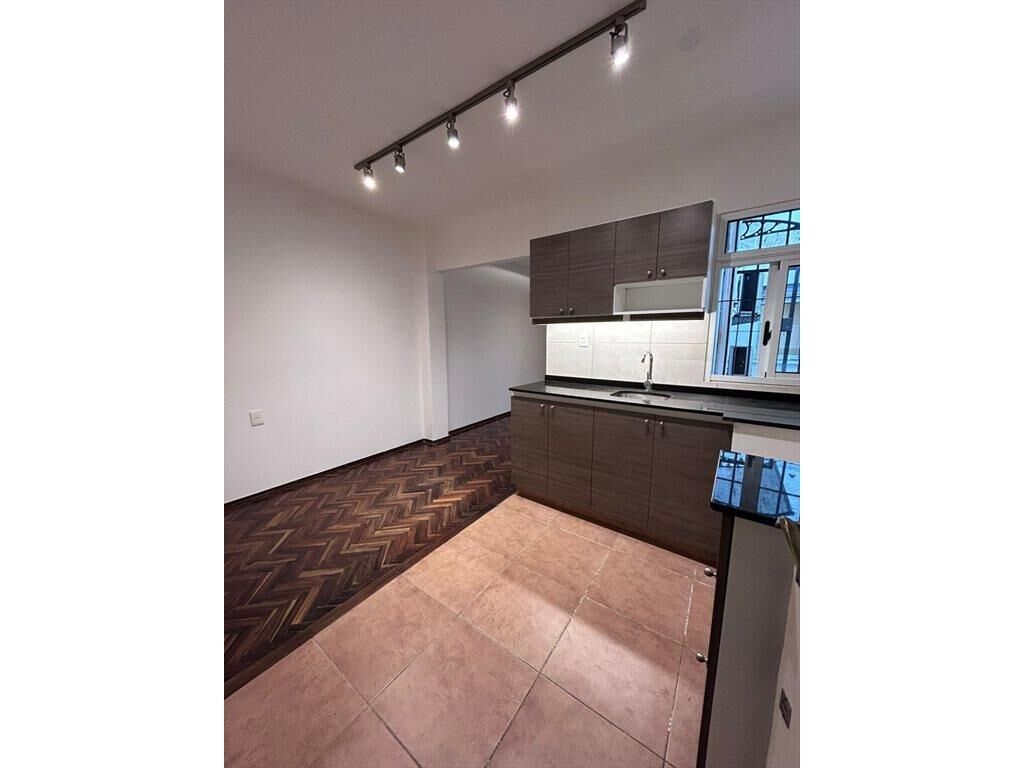 Apartamento interno en planta baja con patio de uso exclusivo. Al ingreso cocina integrada, actualizada, con espacio para comedor. Living con salida a patio de 13 m2. Dormitorio con placard. Baño actualizado. Pisos de parquet, plastificados, ventanas con rejas. Se alquila con dos aires acondicionados y calefón en baño y en cocina. Gastos comunes: $1.900 Garantías aceptadas: aseguradoras.