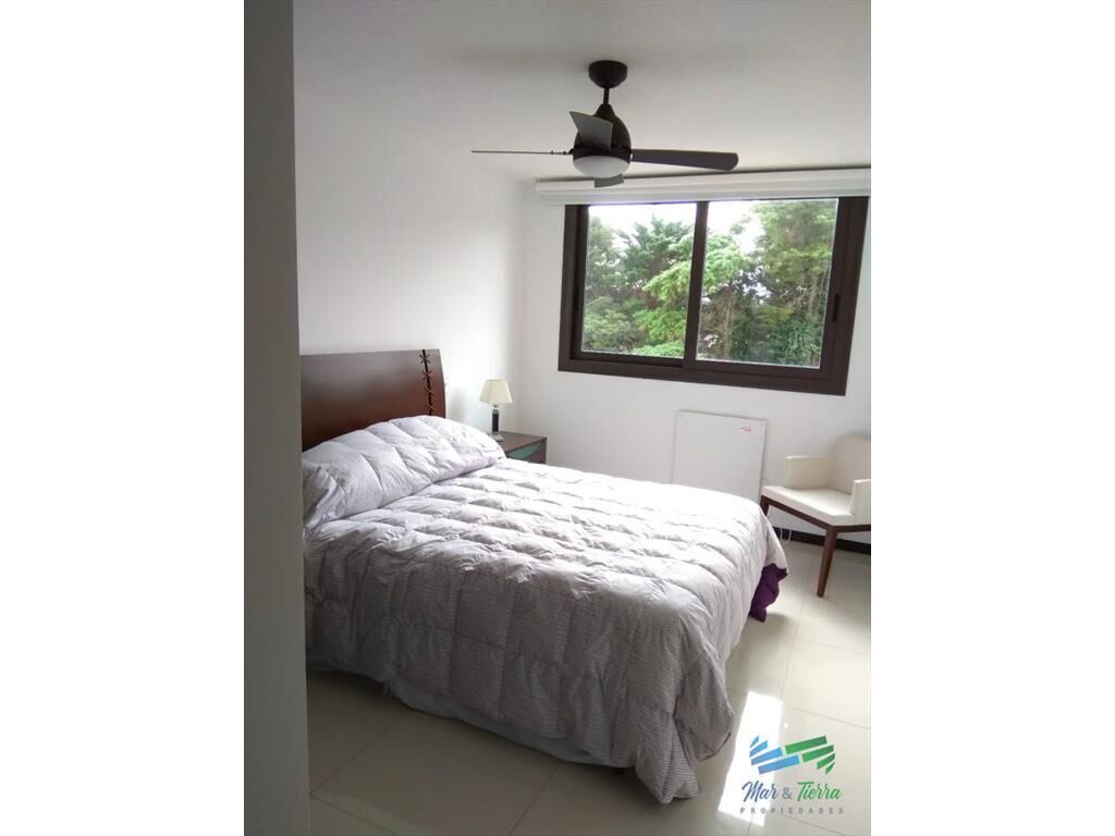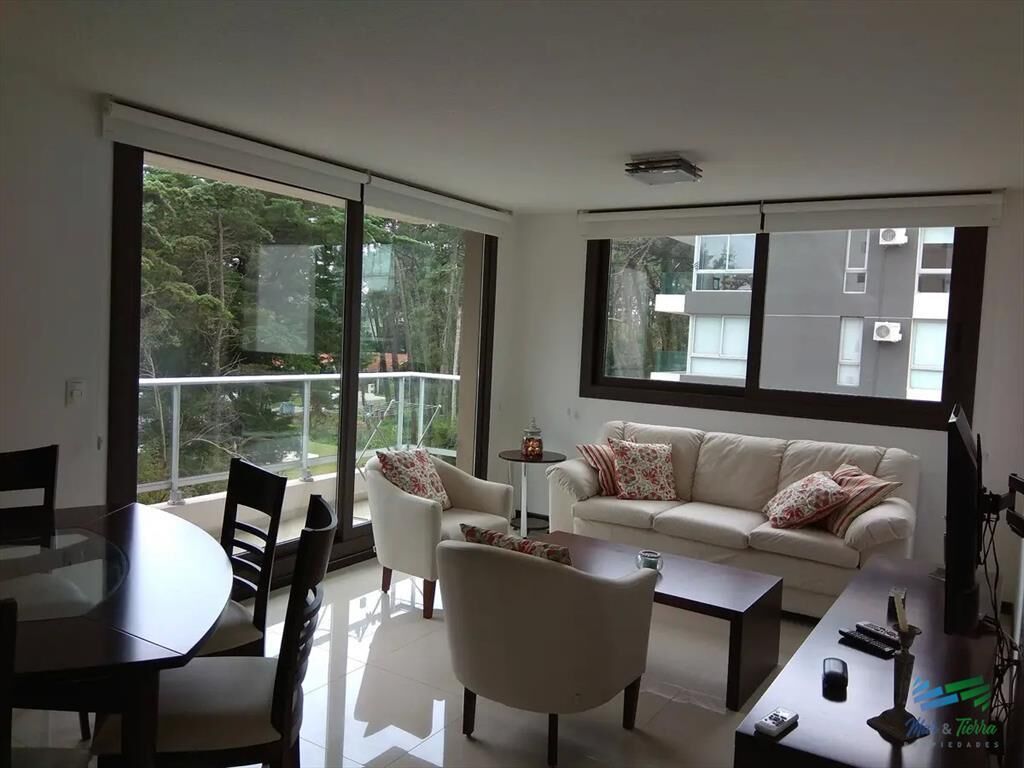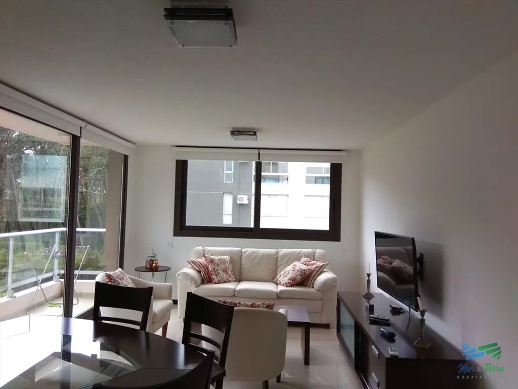 Amplio living comedor, gran dormitorio en suite con sommier, segundo dormitorio: 2 sommier. Cocina definida, terraza con vista al bosque-Cantegrill, muy iluminado, aire acondicionado, vajilla, lavavajilla, electrodomésticos, TV Smart, Wifi, terraza lavadero. Garage fijo cerrado del apartamento, baulera propia en garaje.