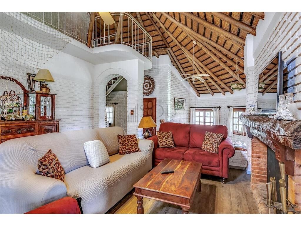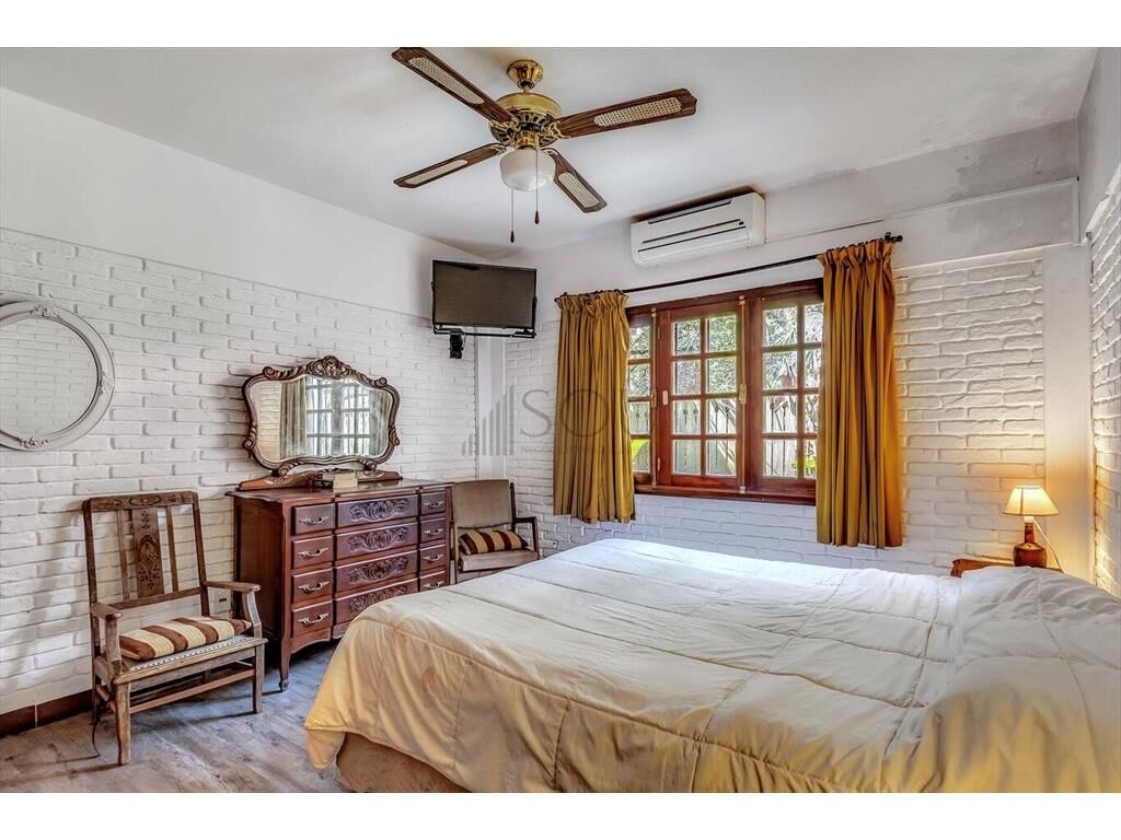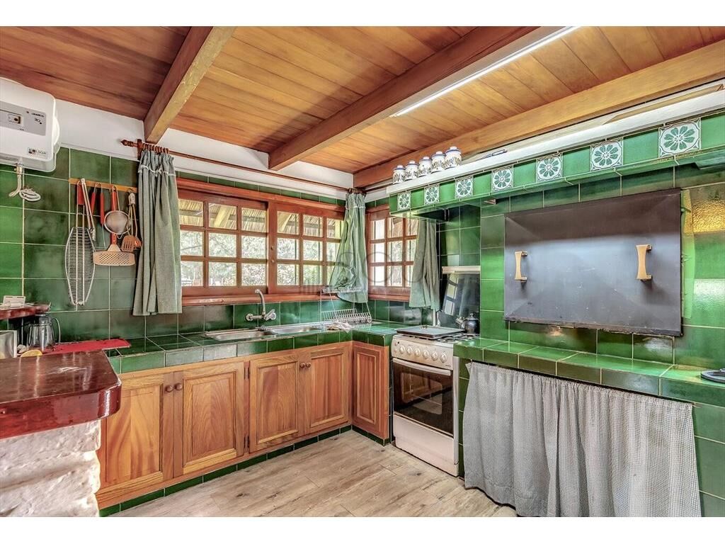 Conjunto a la sala de estar, subiendo dos escalones accedemos al living de 11,5M2, con estufa a leña, el mismo está integrado a lo que podría oficiar como comedor diario de 13M2, con puertas francesas en madera y vidrio que dan al jardín lateral de la propiedad.