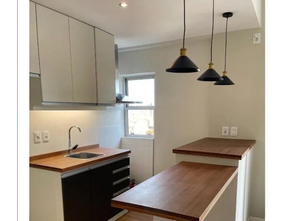 Cocina integrada con muebles aéreos y bajo mesada,campana de extracción de aire acero inoxidabl,cómoda barra de apoyo y desayunador e instalación y espacio para lavarropas.