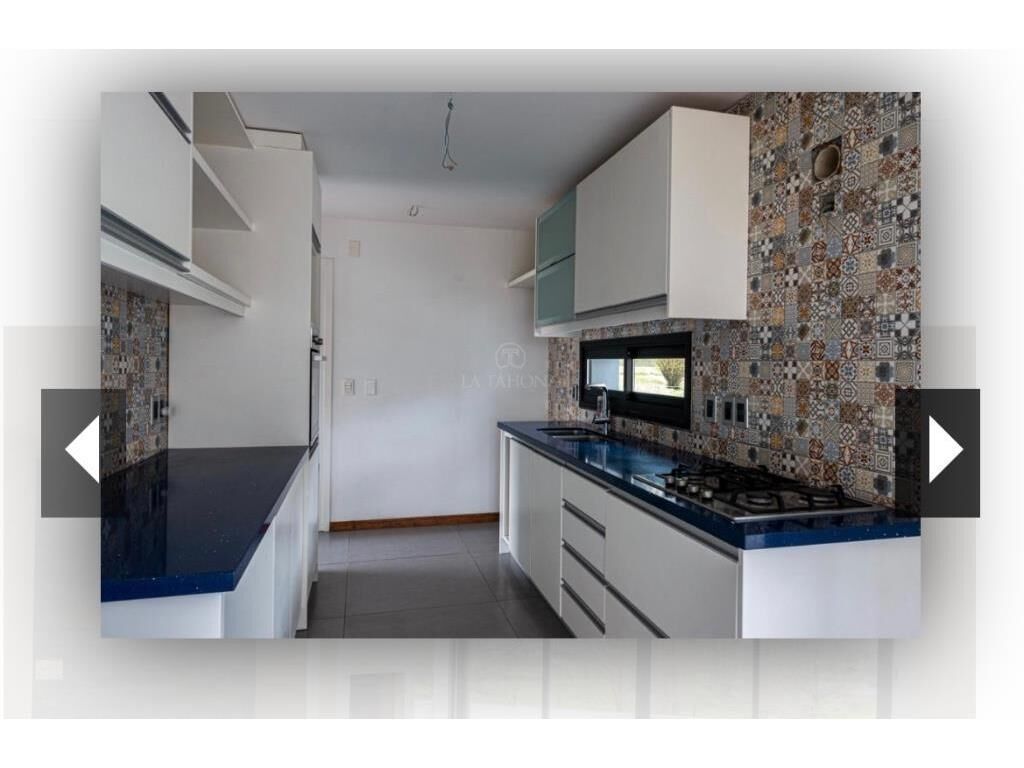 La casa se desarrolla en dos plantas, el área de terreno es de 1030 m² y de construcción es de 250 m².  • 3 dormitorios (3 en suite).  • Living/comedor con estufa a leña.  • Estar. • Cocina. • Baño social. • Servicio completo. • Galería con parrillero. • Losa radiante eléctrica  "Lomas de la Tahona", es el primer barrio privado realizado por La Tahona. Fue creado en 1994 siendo el precursor de este estilo de urbanizaciones. Se desarrolla en una superficie de 119 ha con un total de 387 lotes.  En el barrio se encuentra el primer campo de golf de La Tahona que además conforma los jardines de las casas construidas, siendo el marco ideal para que sus propietarios disfruten de las actividades al aire libre.   Dentro de los servicios del barrio se incluye portería con seguridad las 24 horas los 365 días del año y transporte propio
