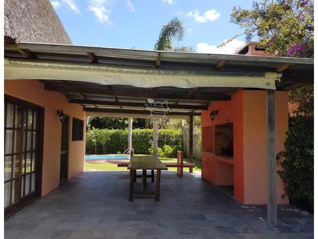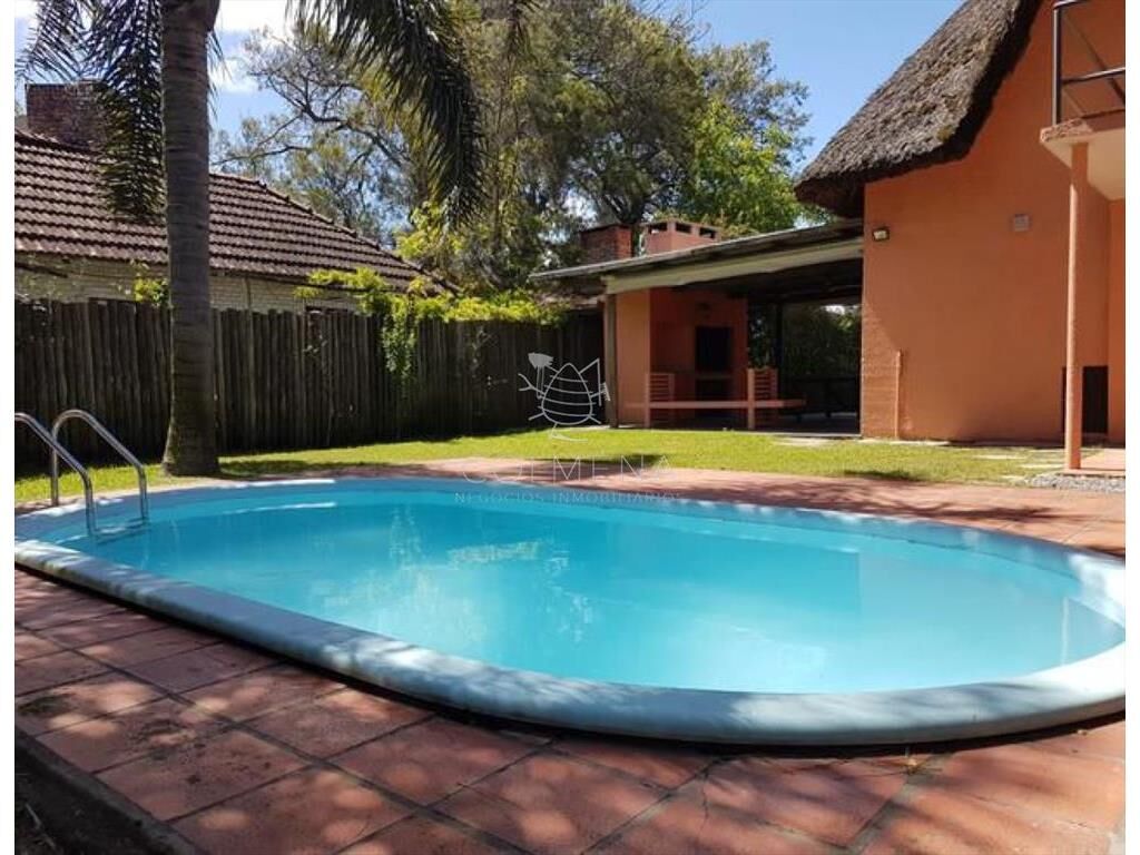 Agradable cabaña, a 3 cuadras del mar. Living-comedor, dos dormitorios mas uno abierto que balconea al living, dos baños recién renovados. Cocina bien equipada. Lavadero con baño. Parrillero techado. Piscina climatizada.