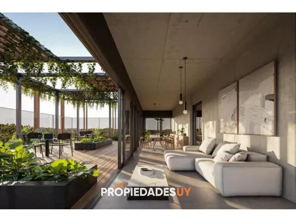 Terraza propi cubierta, ventanas de piso a techo y cocina integrada.