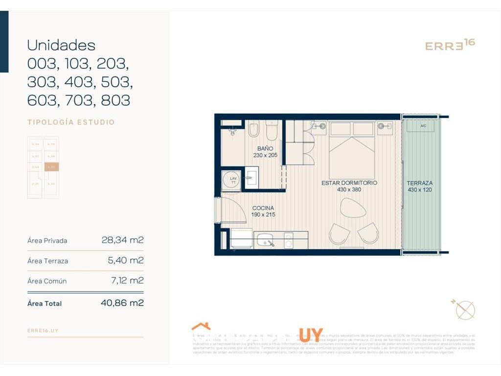Estas unidades Mono ambiente cuentan con ubicación lateral orientadas al norte y al sureste, con terraza y cochera