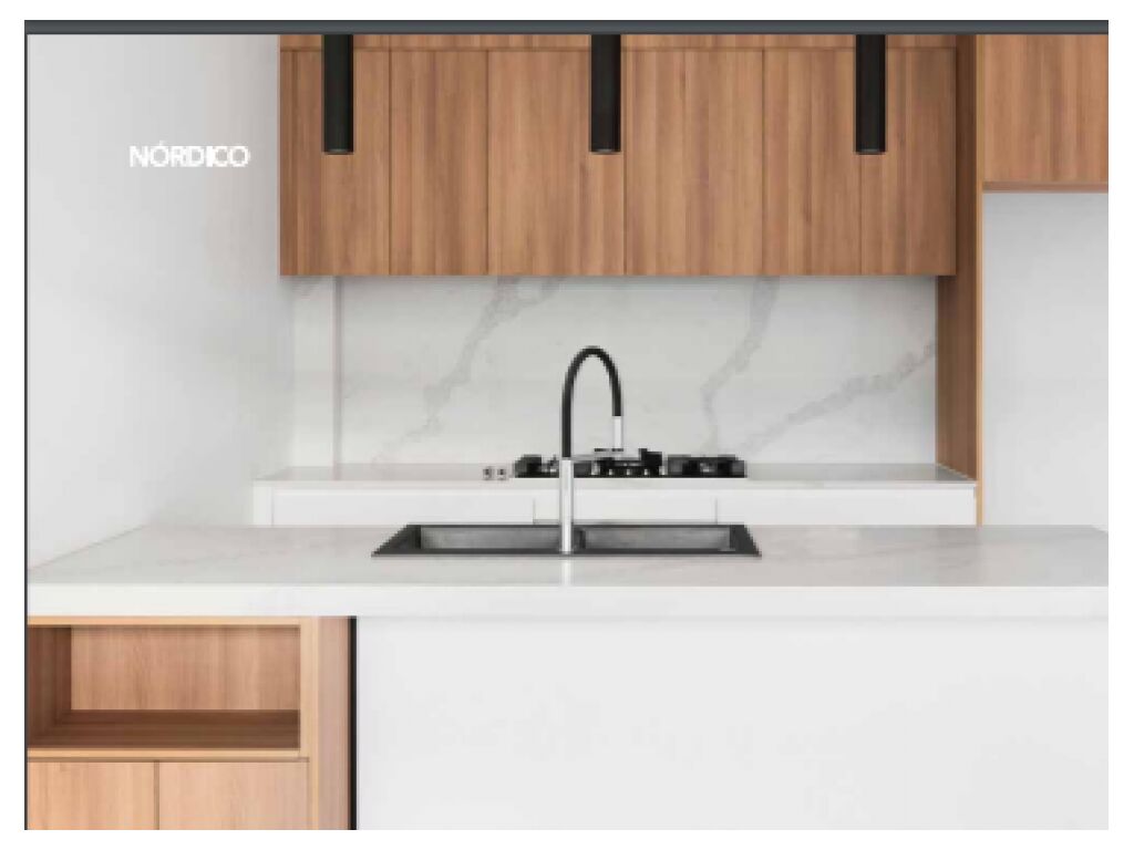 Cocina: Placares aéreos y bajo mesadas Mesadas de quarzo, marca Quarella Griferías FV.
