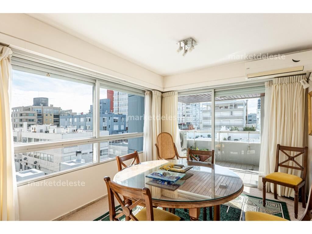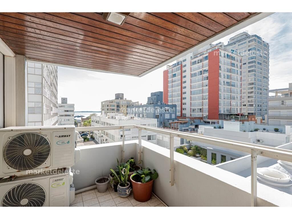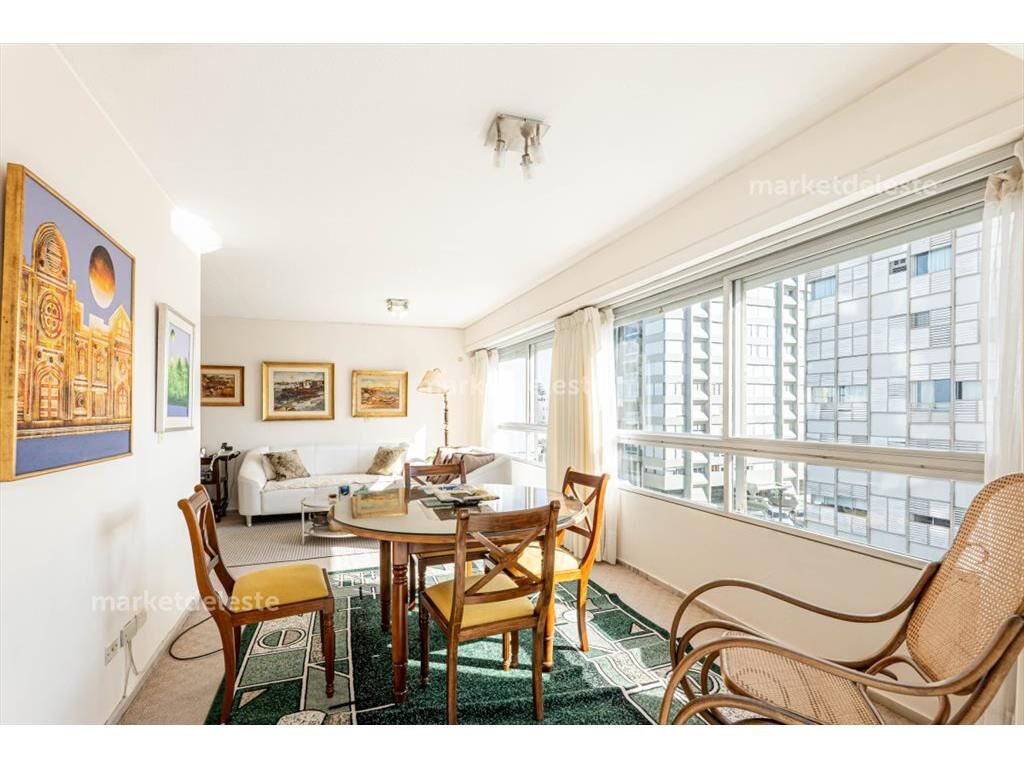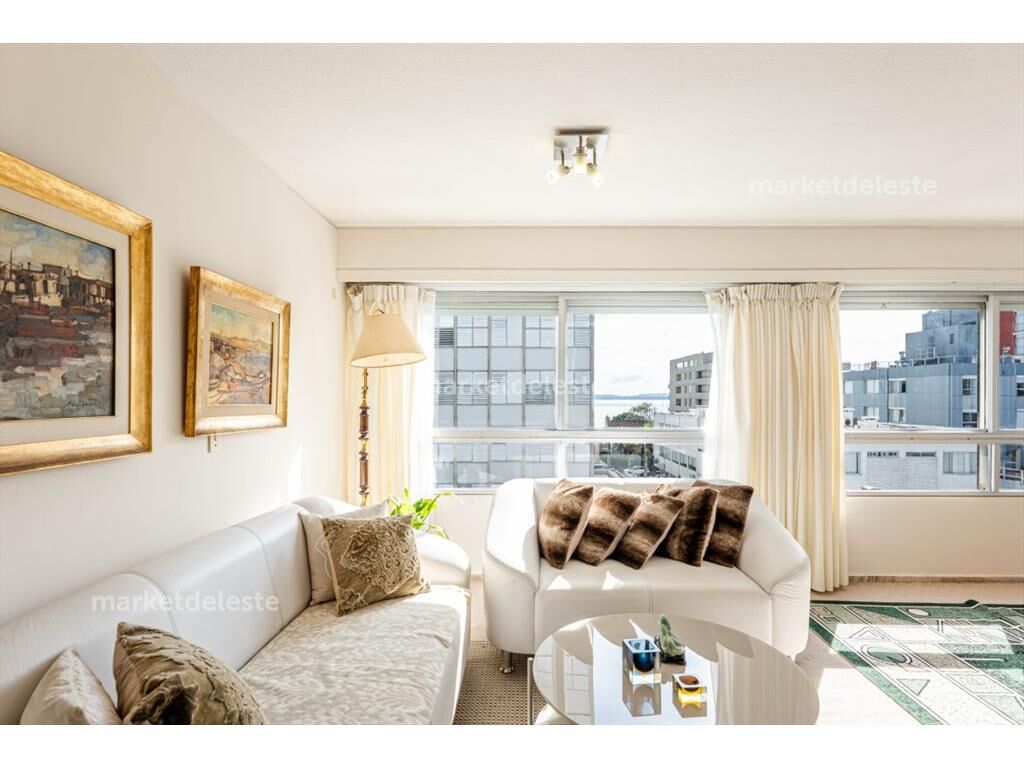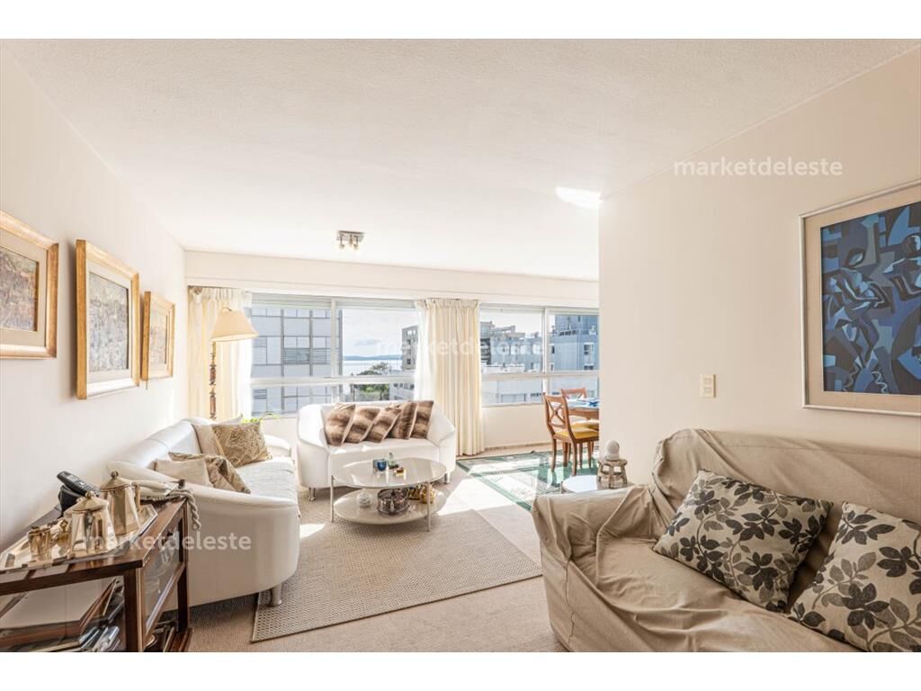 El salón-comedor se extiende hacia un balcón con una agradable vista parcial a playa Mansa. La cocina es definida, práctica y totalmente equipada. El apartamento se presenta en impecables condiciones de conservación y con excelente orientación solar.
