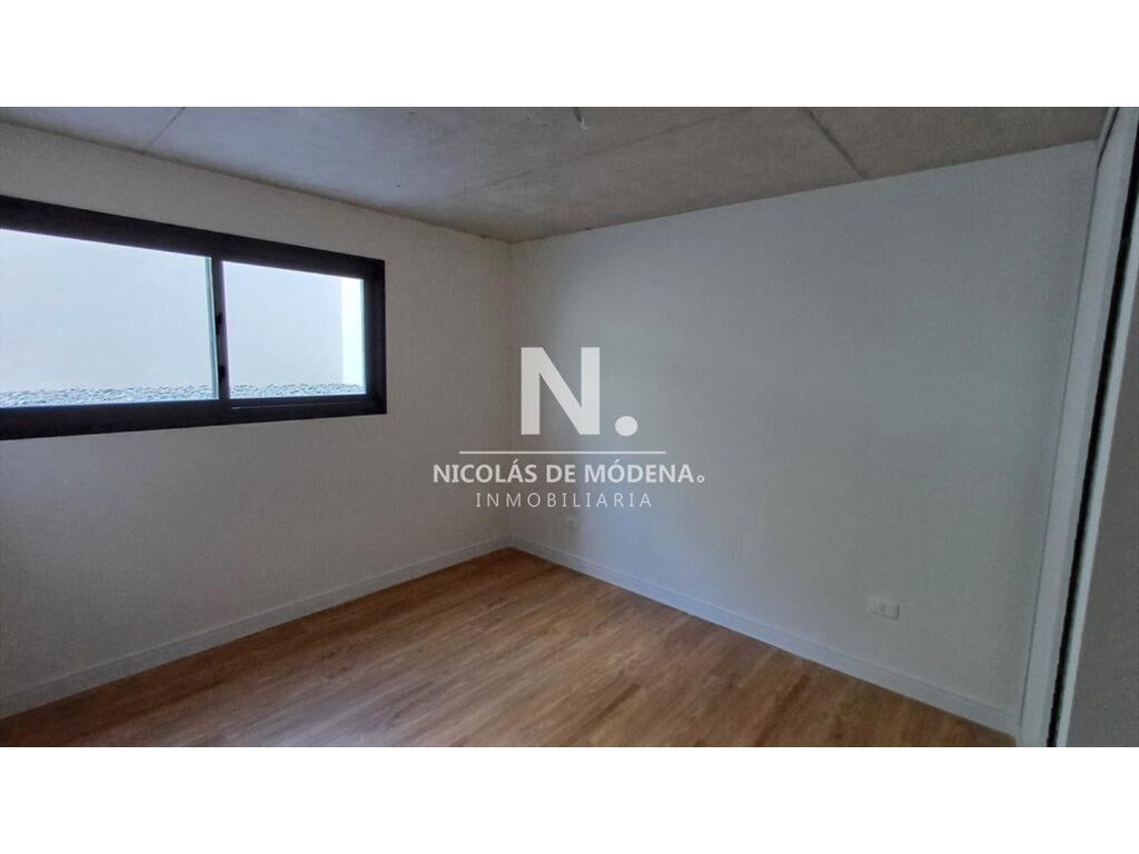 La propiedad consta de dos dormitorios y un baño completo, proporcionando privacidad y comodidad para sus ocupantes. La cocina, de diseño integrado, se conecta de manera fluida con un luminoso living comedor, creando un espacio social compacto y funcional, adecuado para la relajación y el disfrute de comidas.