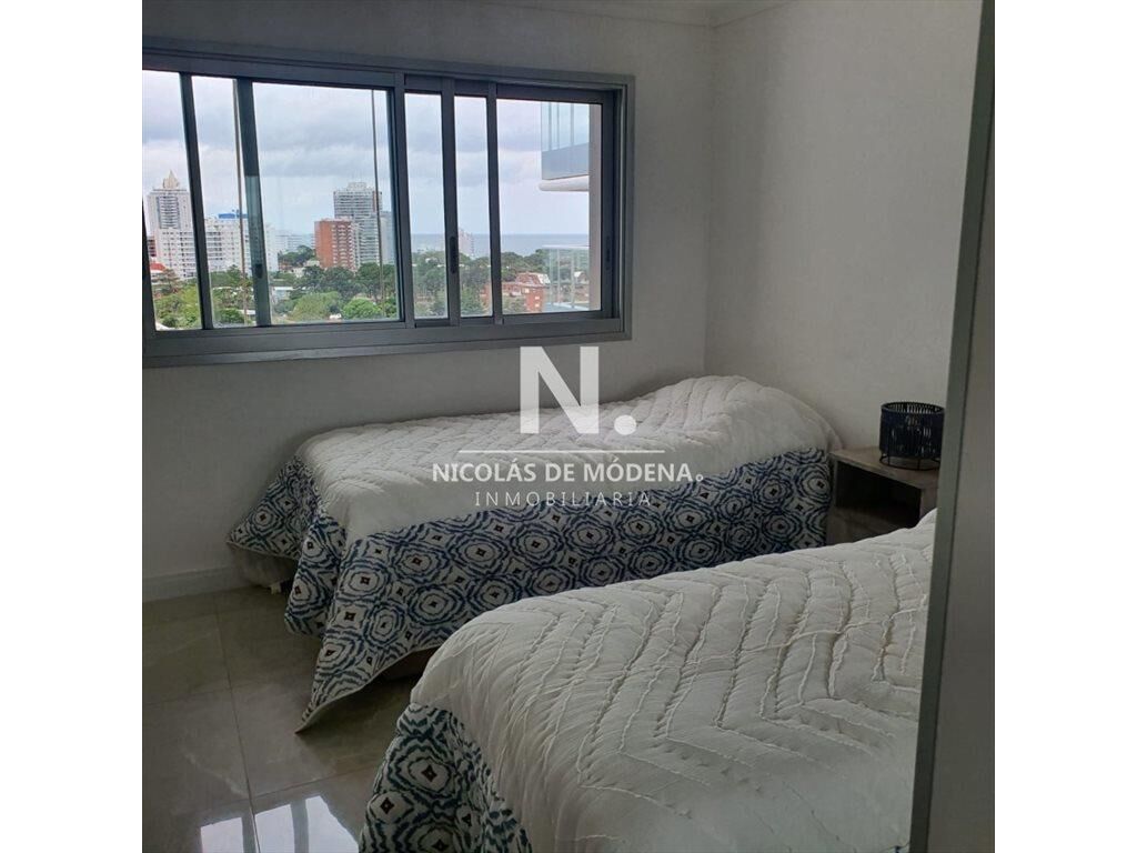 La propiedad cuenta con 2 dormitorios y 2 baños, uno de ellos en suite, con capacidad para 4 personas distribuidas en 3 camas, lo que la hace ideal para una familia pequeña o grupo de amigos. La cocina semi-integrada se conecta con el living comedor, creando un ambiente acogedor y funcional para disfrutar de la estancia. El apartamento está completamente equipado con electrodomésticos modernos, incluyendo anafe, heladera con freezer, aire acondicionado, TV, placares en cocina y dormitorios, horno y bidet en los baños, garantizando una experiencia confortable.