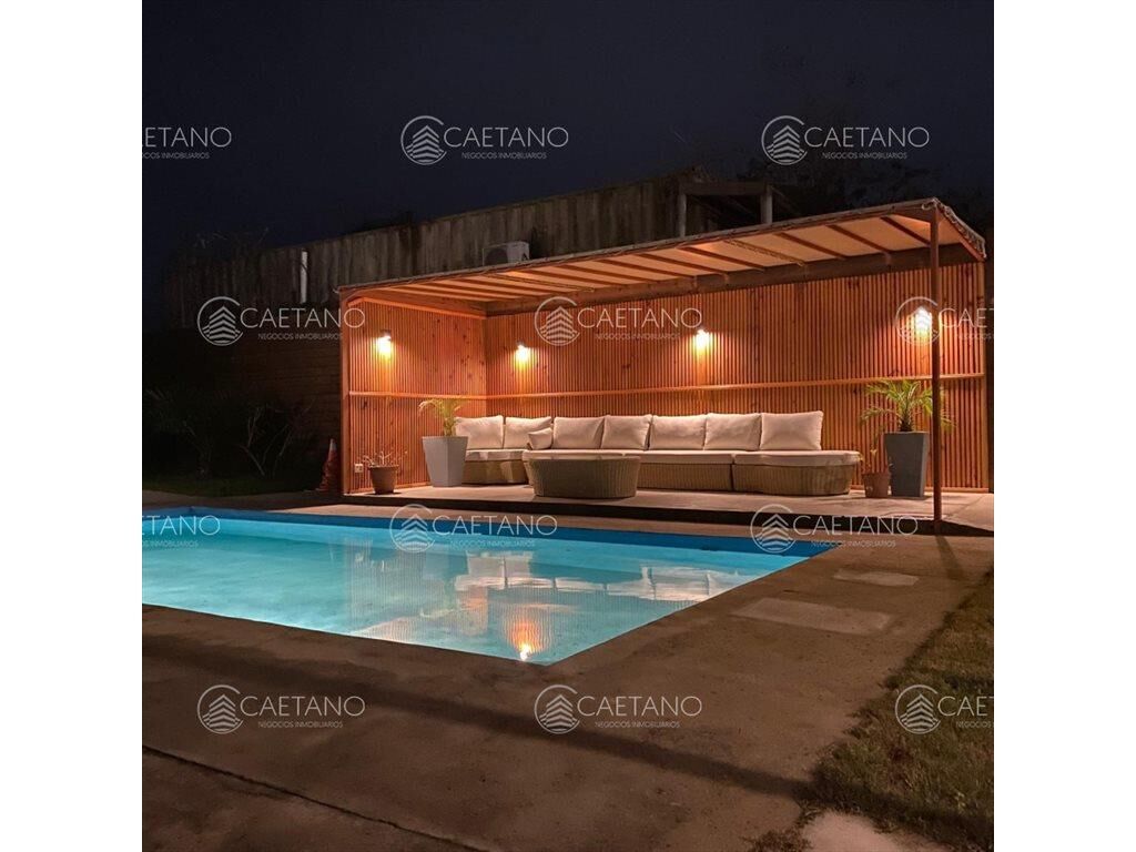 Cochera techada para auto, piscina con maya climatizada solar, y barbacoa
