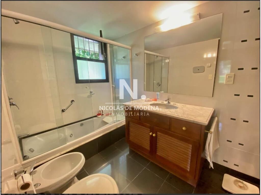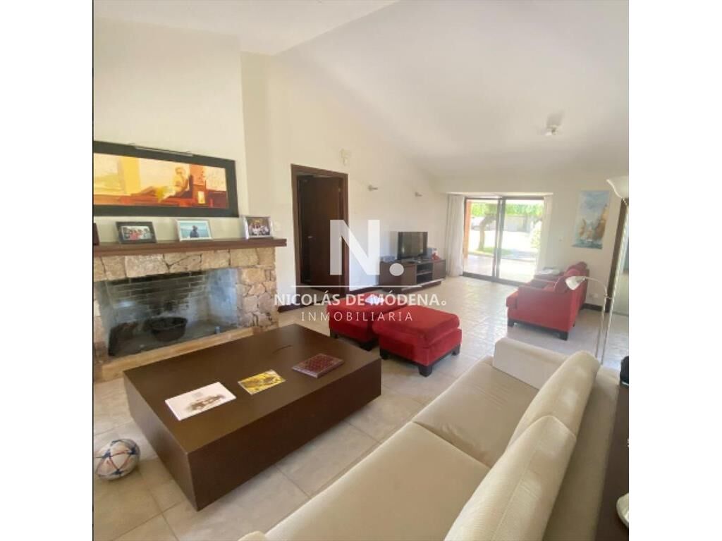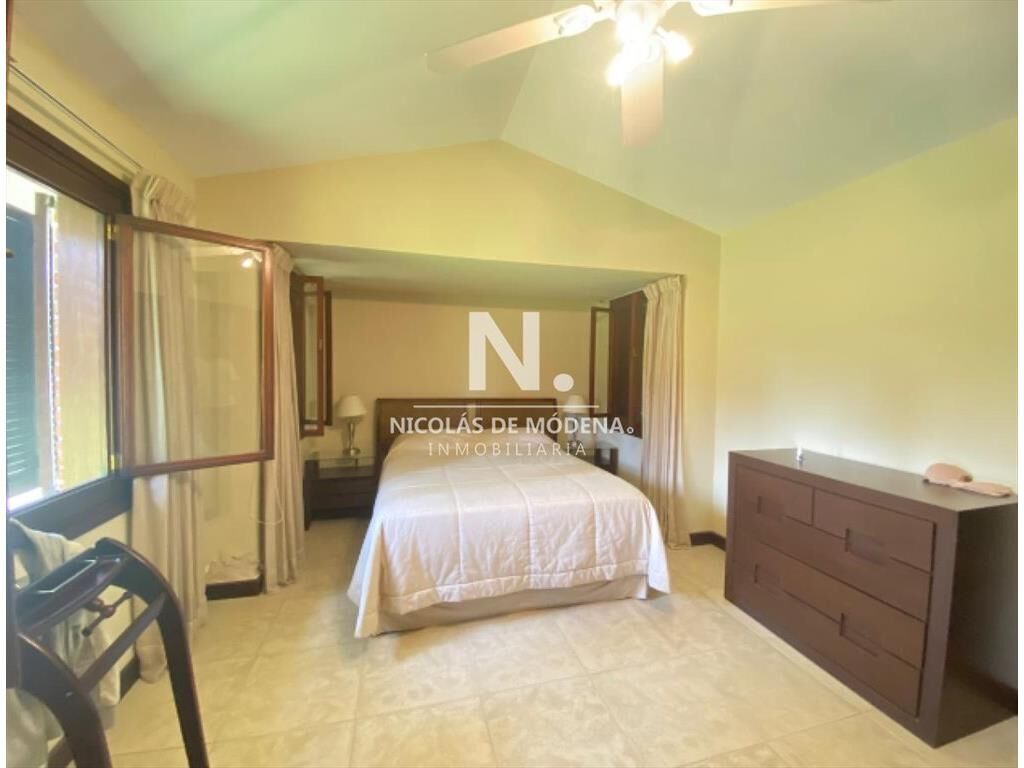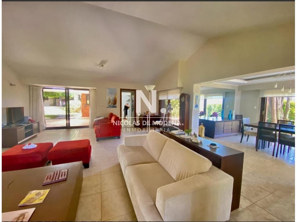 El diseño incluye cocheras techadas en la planta alta con capacidad para tres autos y una cochera adicional en el subsuelo, ofreciendo amplio espacio para el estacionamiento de vehículos. La casa está equipada con aire acondicionado, TV, placares en los dormitorios y la cocina, y se encuentra en un excelente estado de conservación, siendo una de las pocas en este nivel de mantenimiento en la zona.