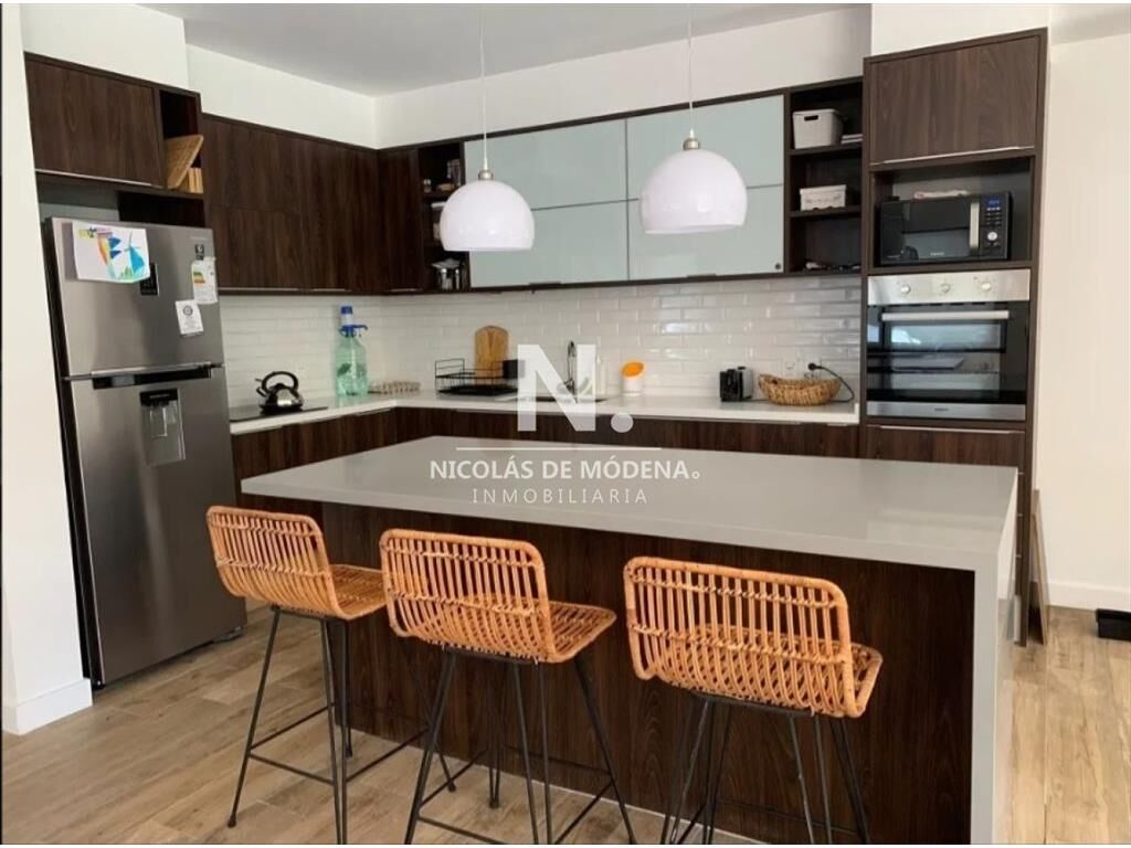 Cocina integrada a living comedor.