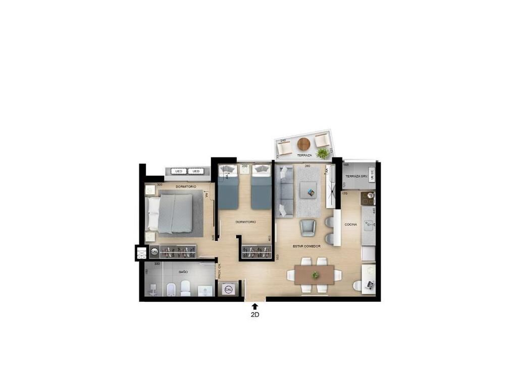 LIVING COMEDOR AL FRENTE CON SALIDA A TERRAZA, COCINA SEMI INTEGRADA, TERRAZA LAVADERO, 2 DORMITORIOS BAÑO COMPLETO.