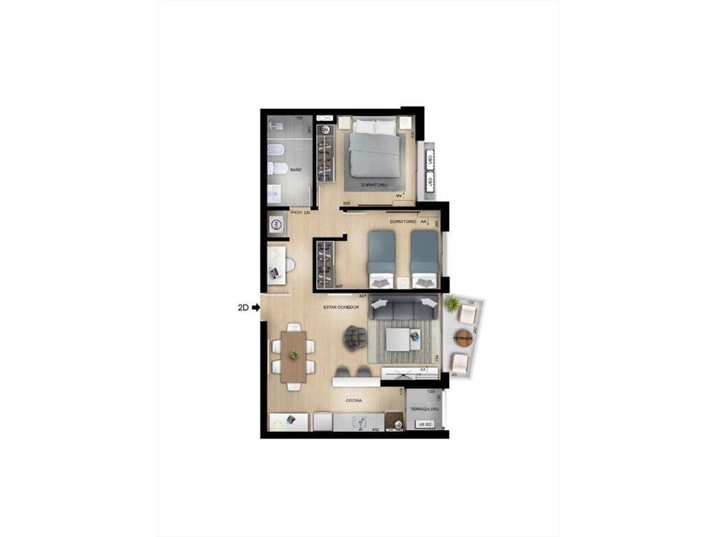 LIVING COMEDOR CON SALIDA A TERRAZA, COCINA INTEGRADA, 2 DORMITORIOS, BAÑO COMPLETO.