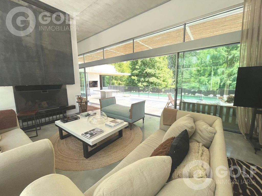- El living cuenta con vista despejada al fondo de la casa, con salida a un gran espacio exterior semi-techado con piscina estilo sin fin.