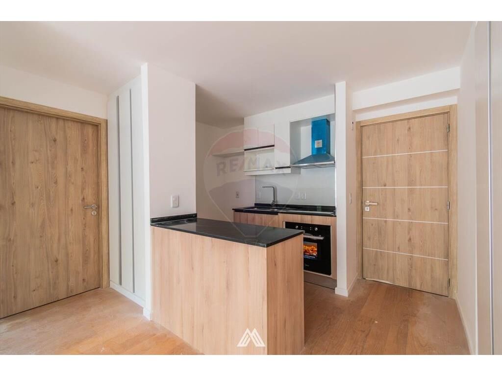Living comedor con cocina integrada y salida a la terraza.