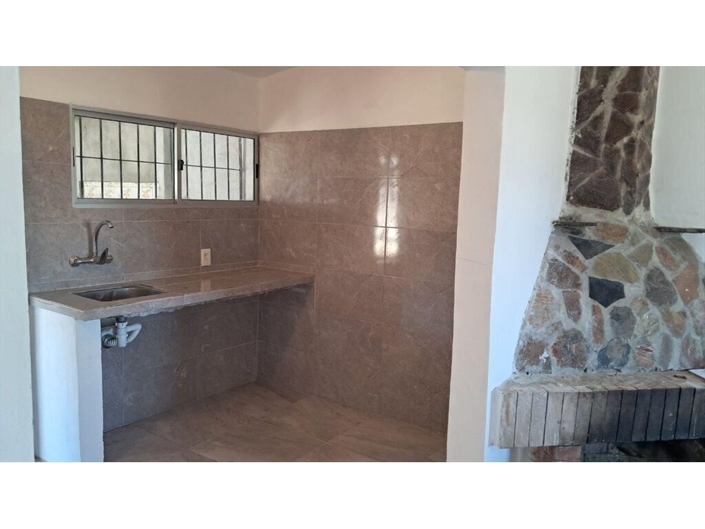 Al entrar nos encontramos con el área de la cocina semi integrada al comedor y con estufa a leña que da la espalda a una pequeño dormitorio con su baño.