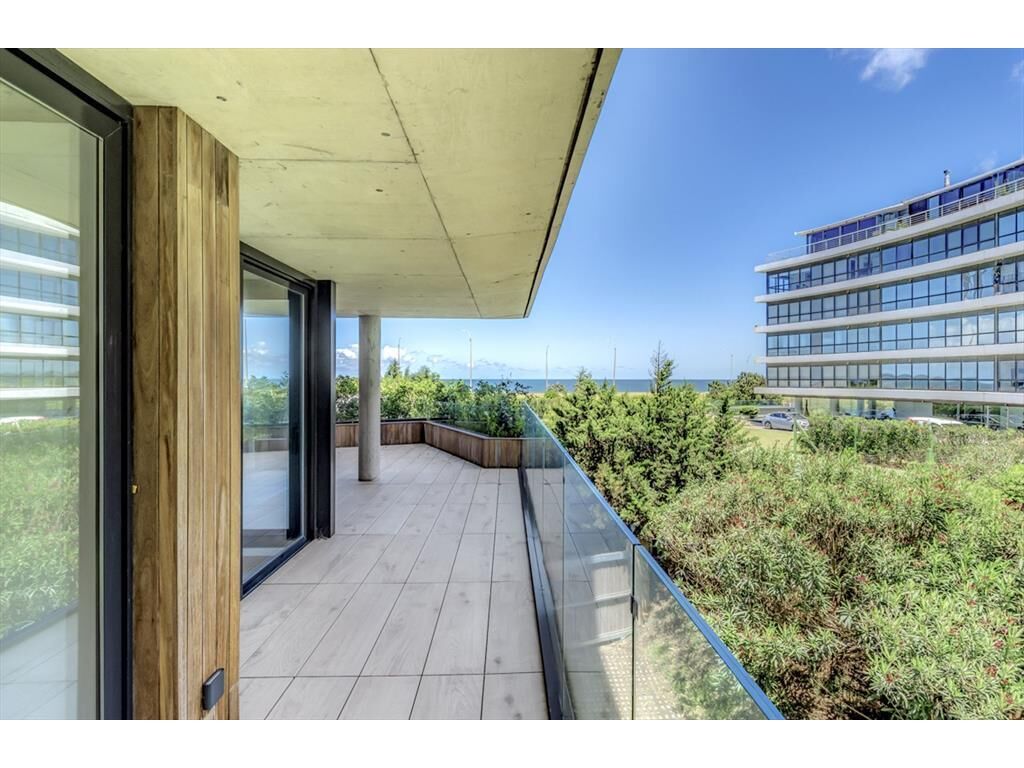 El apartamento se extiende hacia una gran terraza con vistas panorámicas a la Playa Mansa, accesible desde el living comedor y los dormitorios. El espacio incluye un parrillero privado, ideal para crear momentos inolvidables al aire libre.