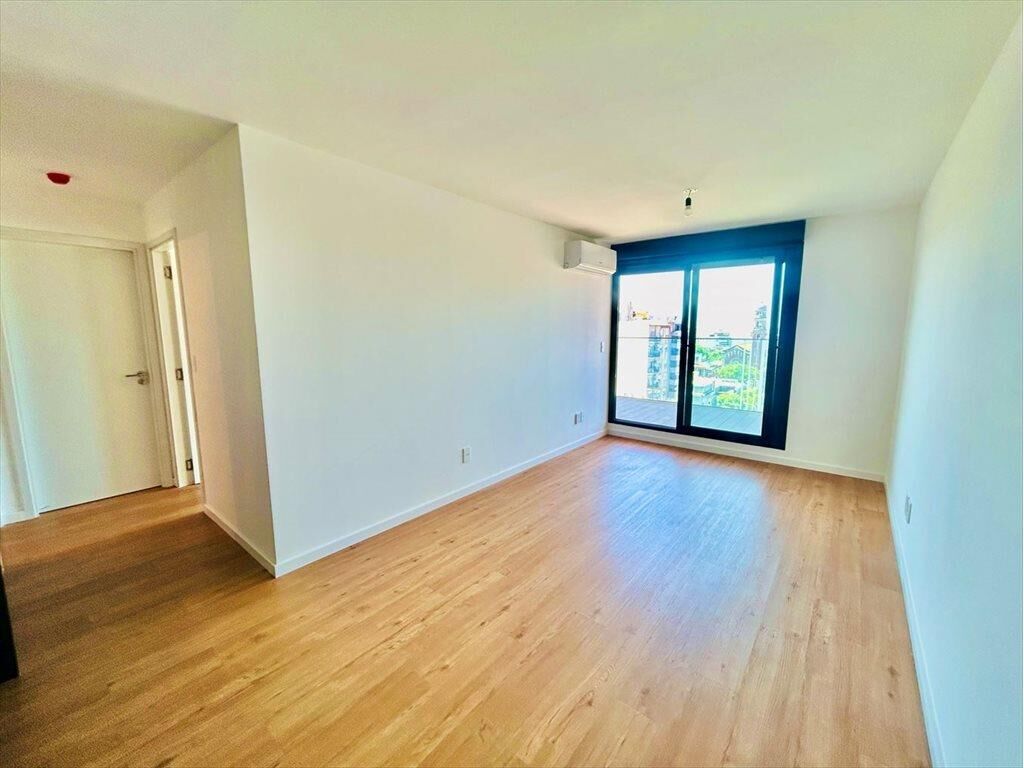 Living comedor con vista al mar, Gran balcón que recorre tanto living como dormitorios, cocina integrada con barra, equipada con horno anafe y campana de extracción.