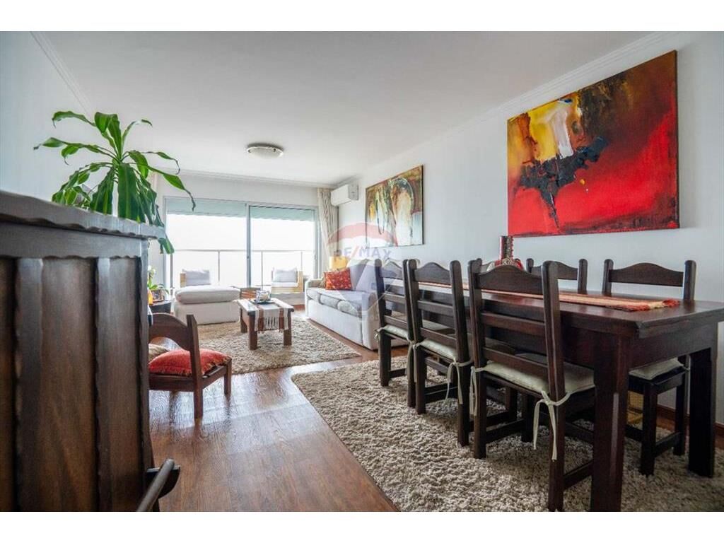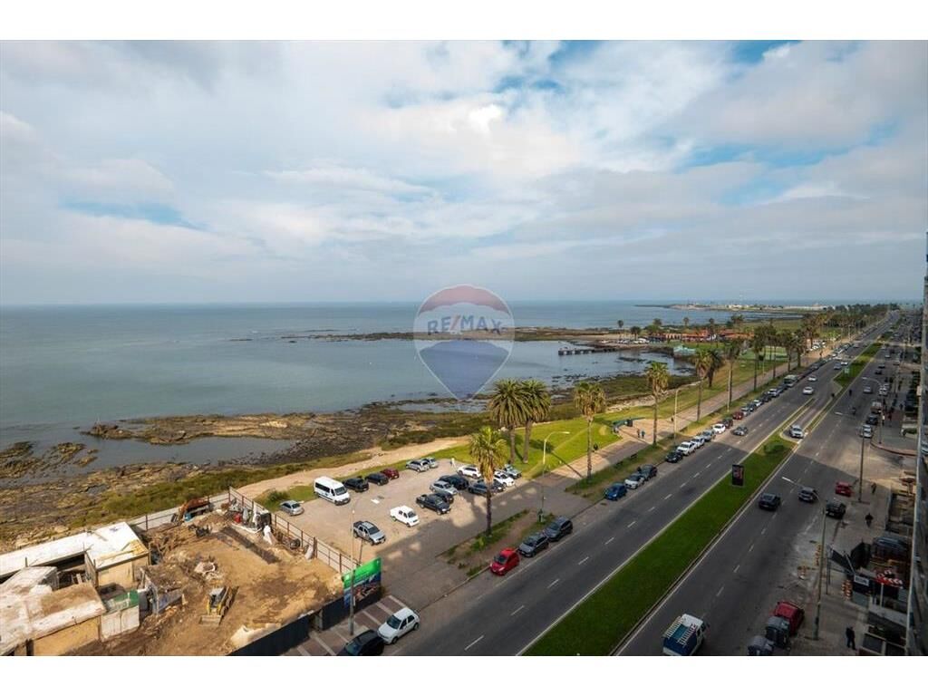 Piso alto. Cuenta con entrada principal y de servicio, living comedor de buen tamaño con salida a terraza sobre rambla de buenas dimensiones, con vista panorámica.