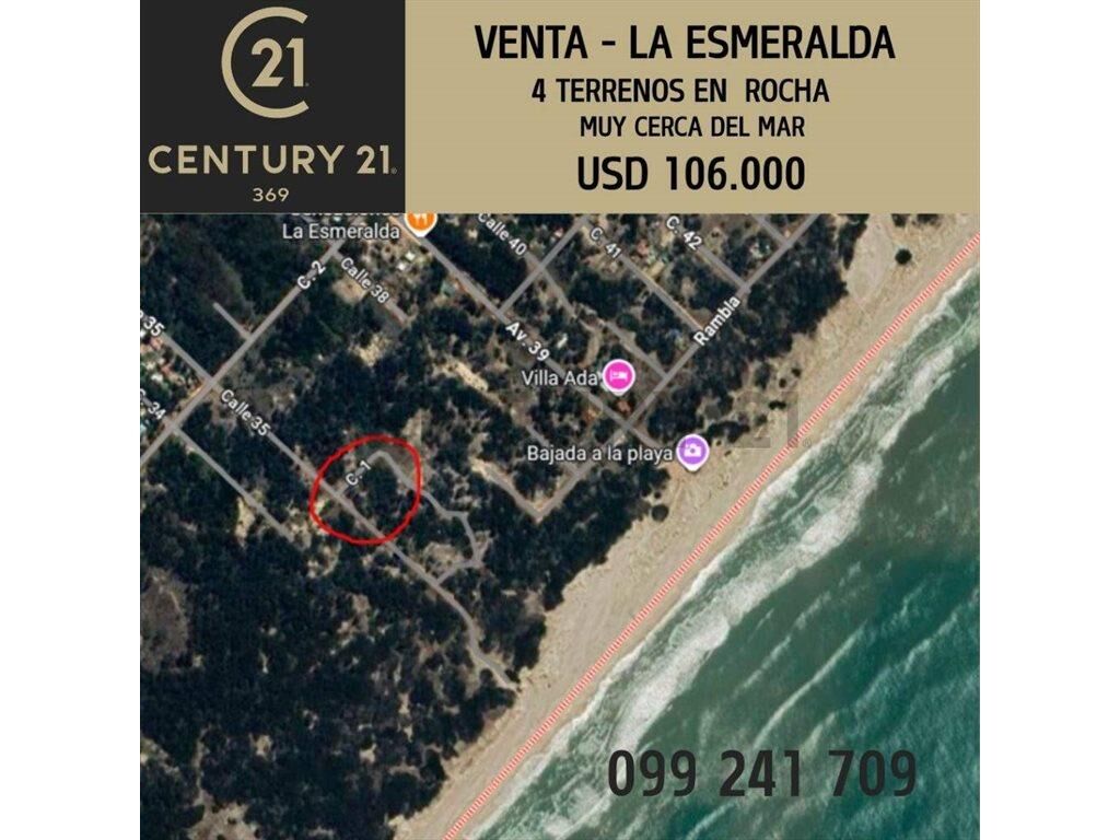 los terrenos se venden juntos, la nueva normativa de construcción en La Esmeralda, que busca proteger el entorno costero la laguna y las áreas protegidas, regulando el tamaño la ubicación y los materiales de construcción, determina que para esta zona en que están los terrenos (la primer franja contra el mar), el área mínima que se pide para poder construír es de 2000 m2.
