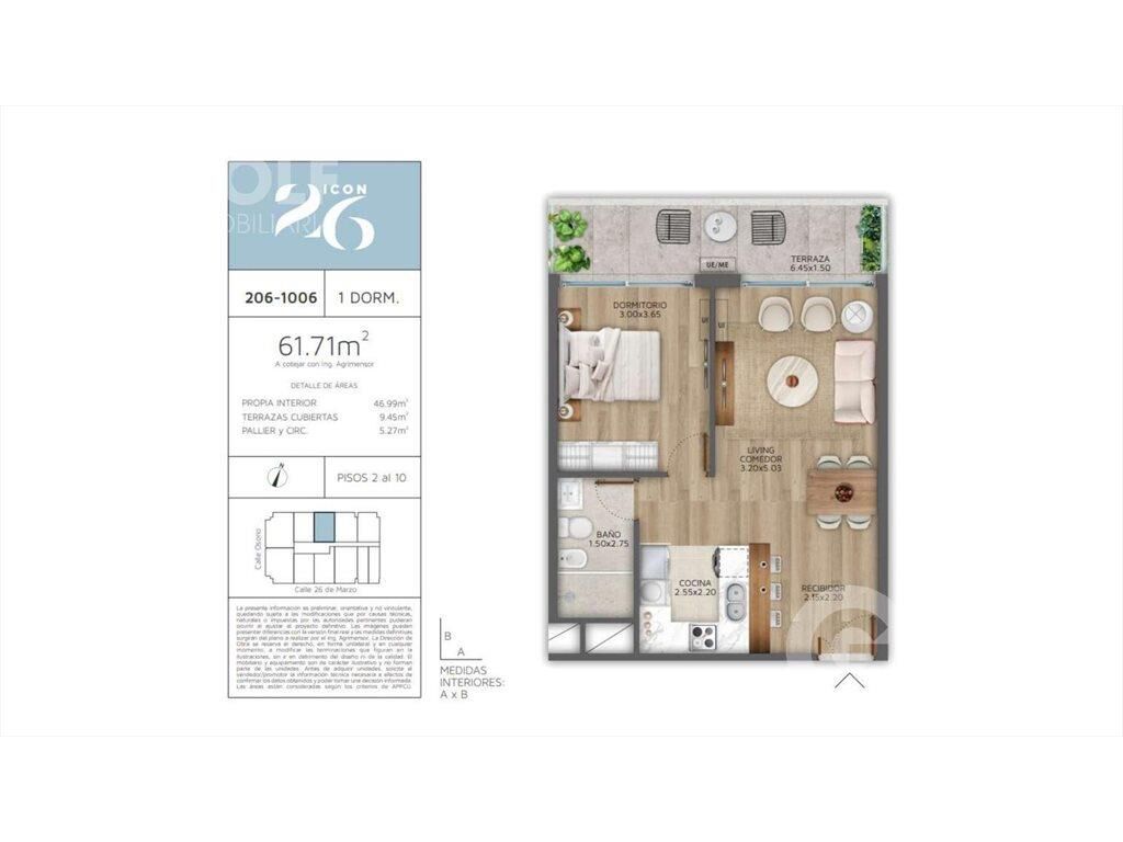 Apartamento de 1 dormitorio con terraza en Pocitos