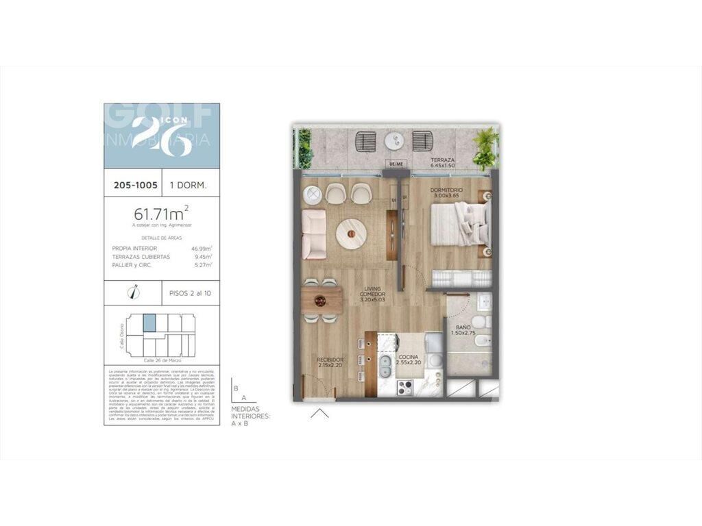 Venta Apartamento Monoambiente con terraza en Pocitos - Hall de distribución - Living Comedor con salida a terraza - Cocina Integrada Icon 26 ofrece numerosos amenities: - Laundry de lavado y secado con app - 2 Barbacoas - Gimnasio - Terraza 360º - 275mts2 de layout libre para empresas - Lobby de diseño con concierge 24/7 - Paseo peatonal publico enjardinado - Plataforma con juegos para niños - Pick-up Lockers - Conexión para autos electricos - Bici parking Gastos de ocupación 4% INMOBILIARIA GOLF Afiliados a Cámara Inmobiliaria Uruguaya